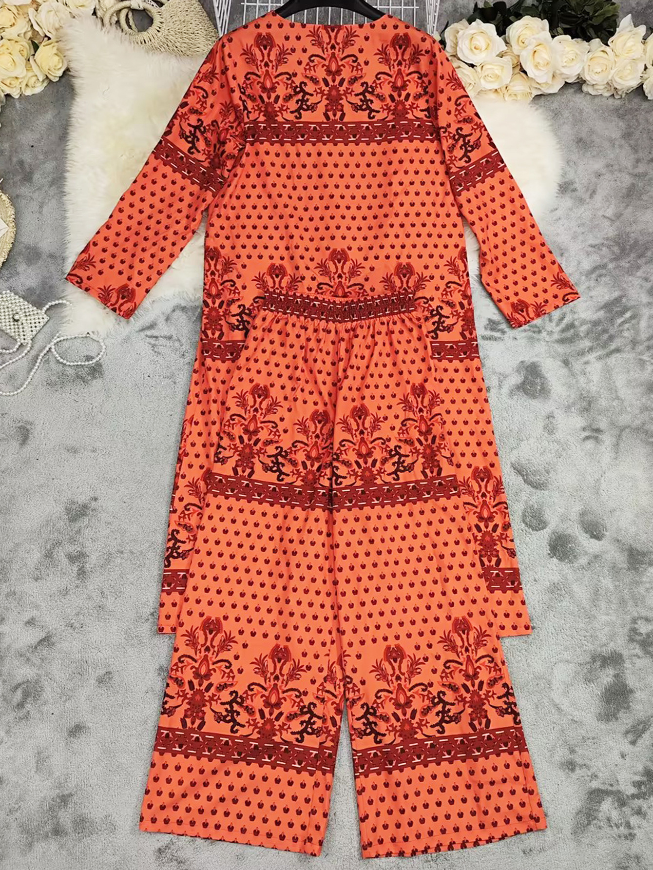 This Women Spring Summer Print Top And Wide Leg Pants Two Piece Set Design Made Of High Quality polyester And Spandex Material. It Is Stretchy, Durable And Comfortable. It Is a Must-Have Outfit For All Seasons. retail Two Piece Pant Sets Can Solve Your cloth selection Troubles. Explore More 2 Piece Pants Set On BamBam retail Women Clothing Online Store.