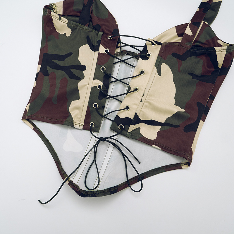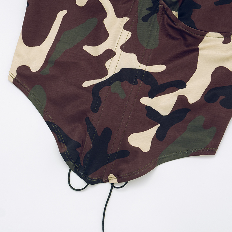 This Women Spring/Summer Strapless Lace-Up Camouflage Gathered Top And Pants Two-Piece Set Design Made Of High Quality polyester And Spandex Material. It Is Stretchy, Durable And Comfortable. It Is a Must-Have Outfit For All Seasons. retail Two Piece Pant Sets Can Solve Your cloth selection Troubles. Explore More 2 Piece Pants Set On BamBam retail Women Clothing Online Store.
