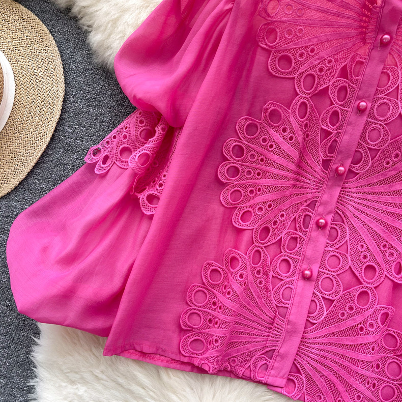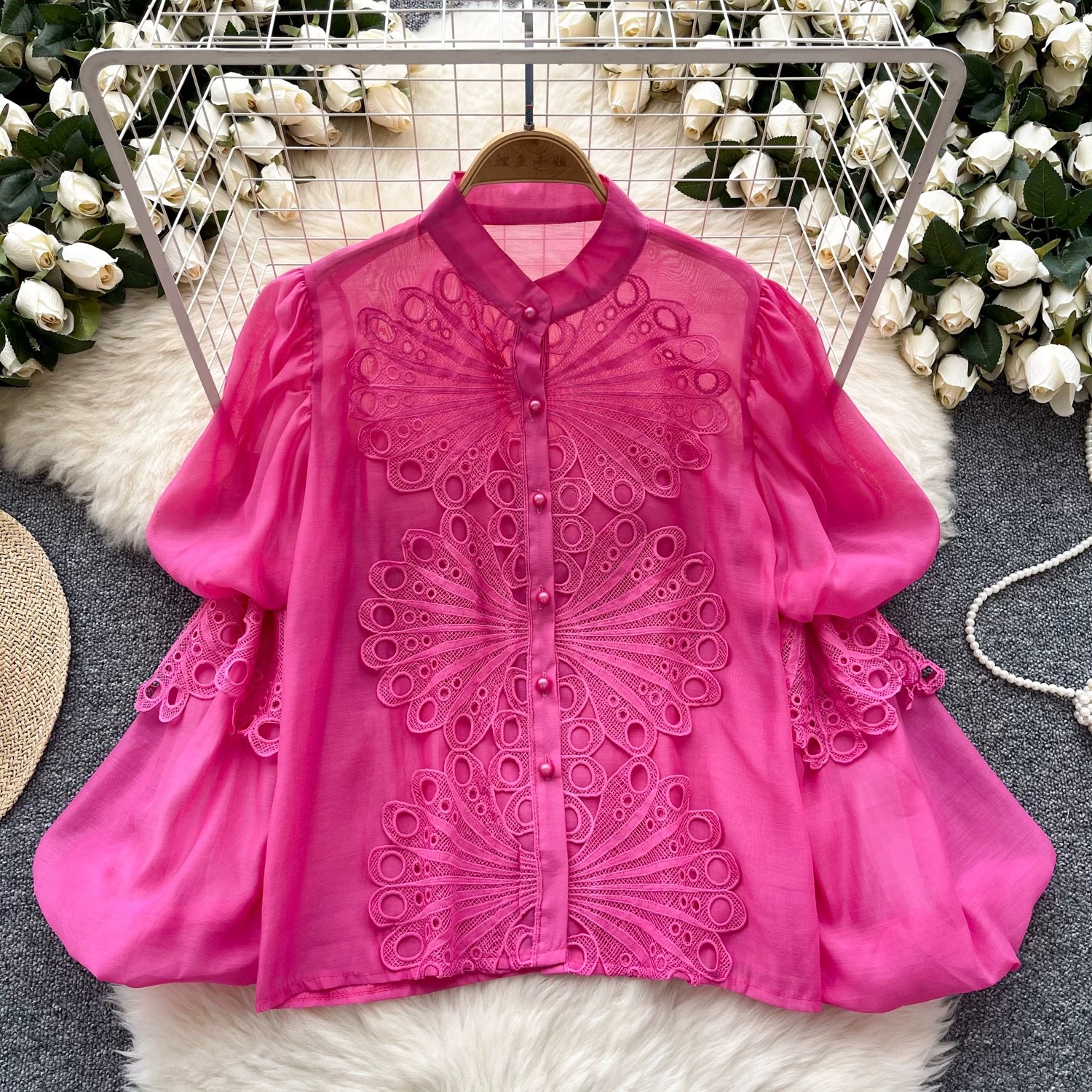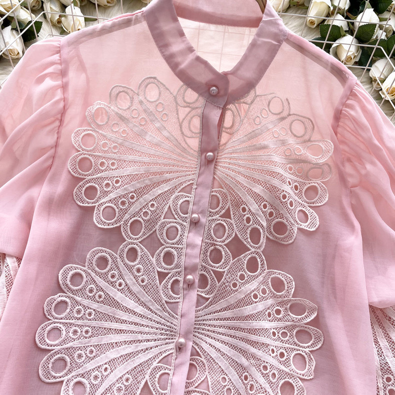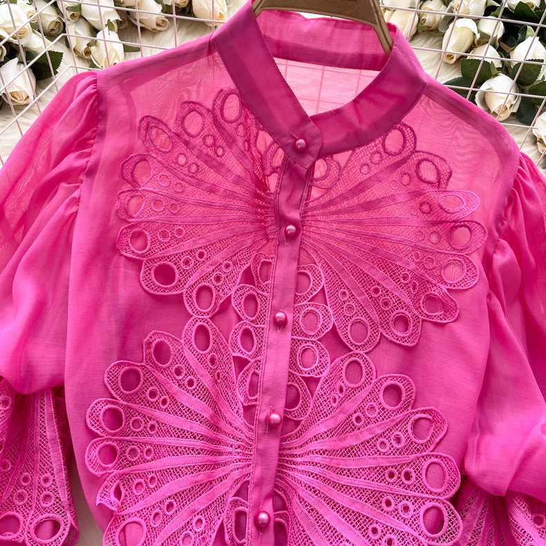 This Women Stand Collar Lantern Sleeve Embroidered Openwork Lace Crop Top Is Soft And Comfortable. From Street Style cropped inspired design To Party Sexy Satin Tunics Blouse, From Office Elegant Silk To Holiday Loose Cut Chiffon Blouse, From Classic Stripes To Plaid Shirt, From Basic White Color To Printed Floral Blouse. retail Blouses And Tops For Ladies Is a Must-Have Item in your wardrobe. BamBam Shirts And Blouses Online Are Available In Wide Range Designs. When You Need More retail Women Clothing, You Can Always Find Something Special That You Really Can Not Get From Other Places.