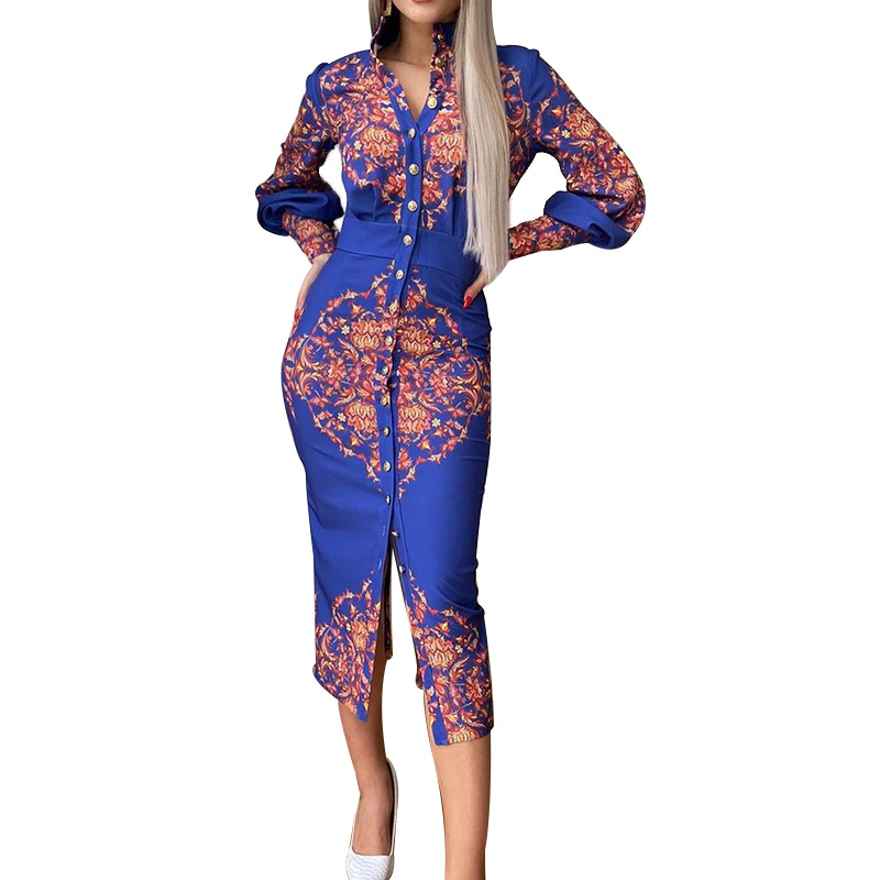 This Women Stand Collar Long Sleeve Print Dress Design Made Of High Quality polyester And Spandex Material. It's nice and stretchy, feels and wears comfortably on your body. Women’s Midi dresses suits all Kinds Of Occasions - Daily Wear, Go To The Church, Commuting And Events Occasion. Midi Dresses can't be Boring, Find Best Midi Dresses At BamBam With Trendy Styles.