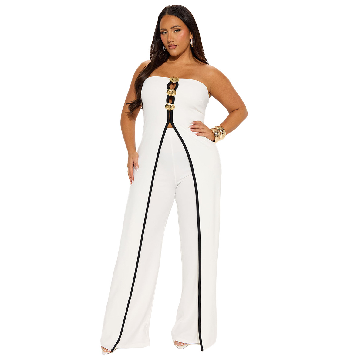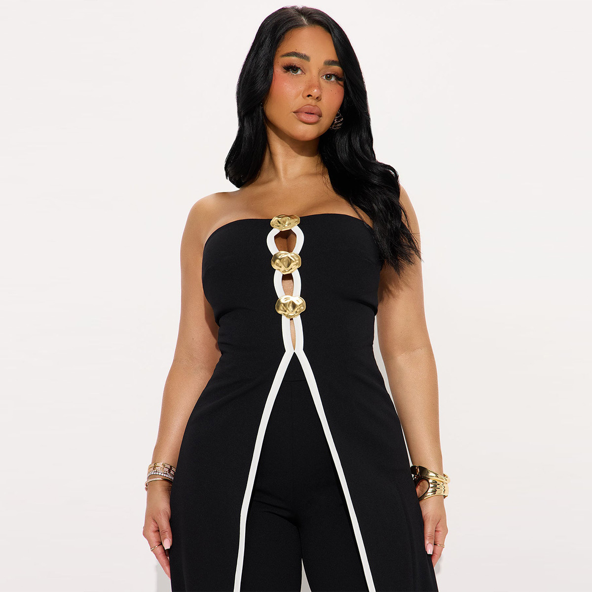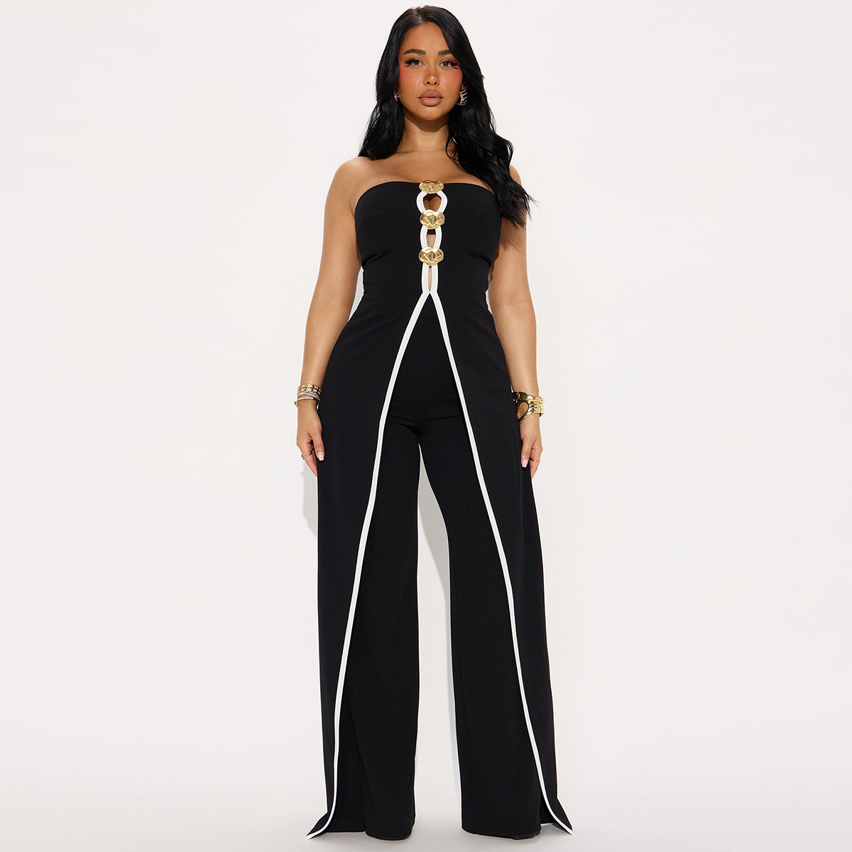 This Women Strapless Fake Two-Piece Elegant Party Jumpsuit Design Made Of High Quality Polyster And Spandex Material. It Is Stretchy, Durable And Comfortable. Affordable Sexy Jumpsuits For Women Has Long Been a Party Favorite. BamBam provides a Rich selection Of Sequin, Beaded, See Through Mesh, Leopard, Floral Lace, Leather, Velvet, Tight And Fitted retail Jumpsuit Without Moq Limit.