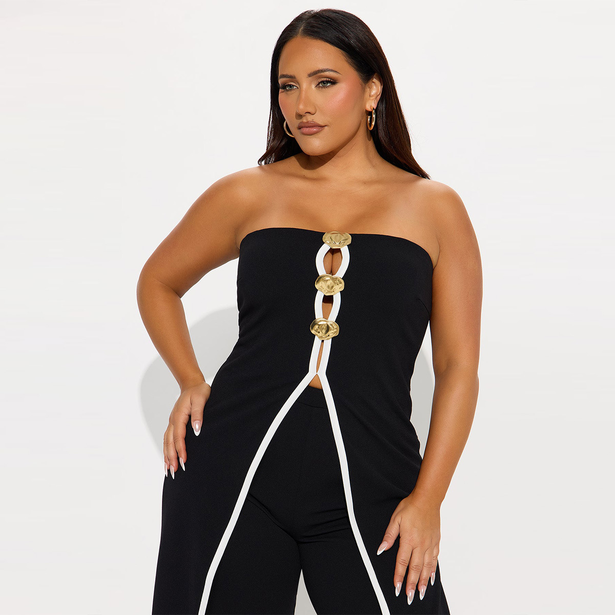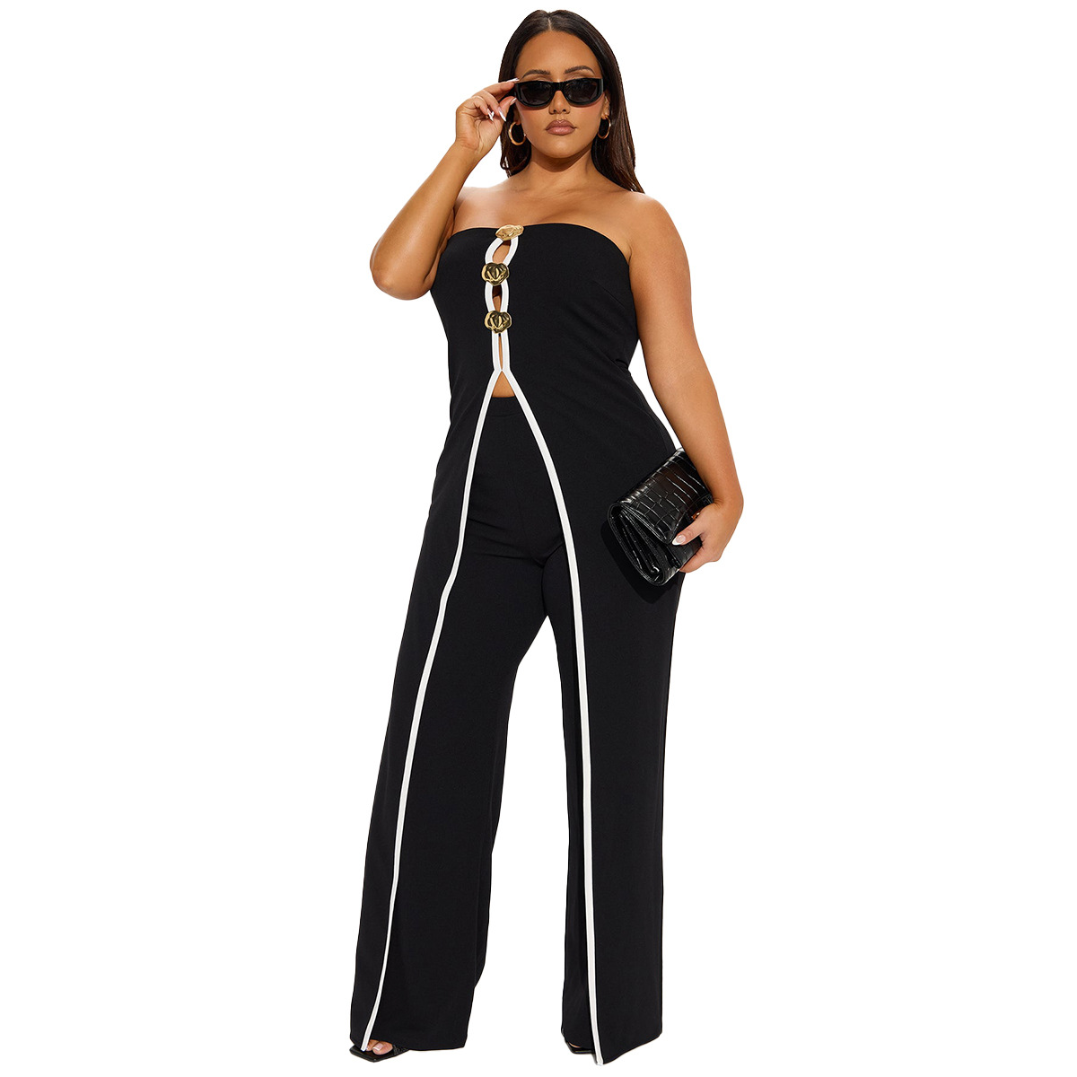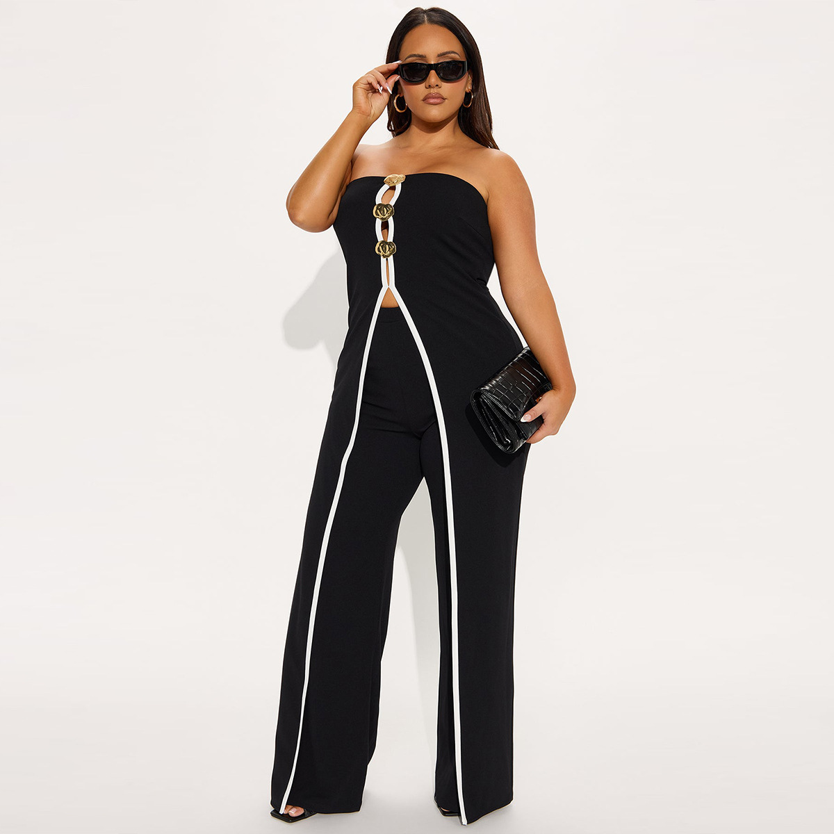 This Women Strapless Fake Two-Piece Elegant Party Jumpsuit Design Made Of High Quality Polyster And Spandex Material. It Is Stretchy, Durable And Comfortable. Affordable Sexy Jumpsuits For Women Has Long Been a Party Favorite. BamBam provides a Rich selection Of Sequin, Beaded, See Through Mesh, Leopard, Floral Lace, Leather, Velvet, Tight And Fitted retail Jumpsuit Without Moq Limit.