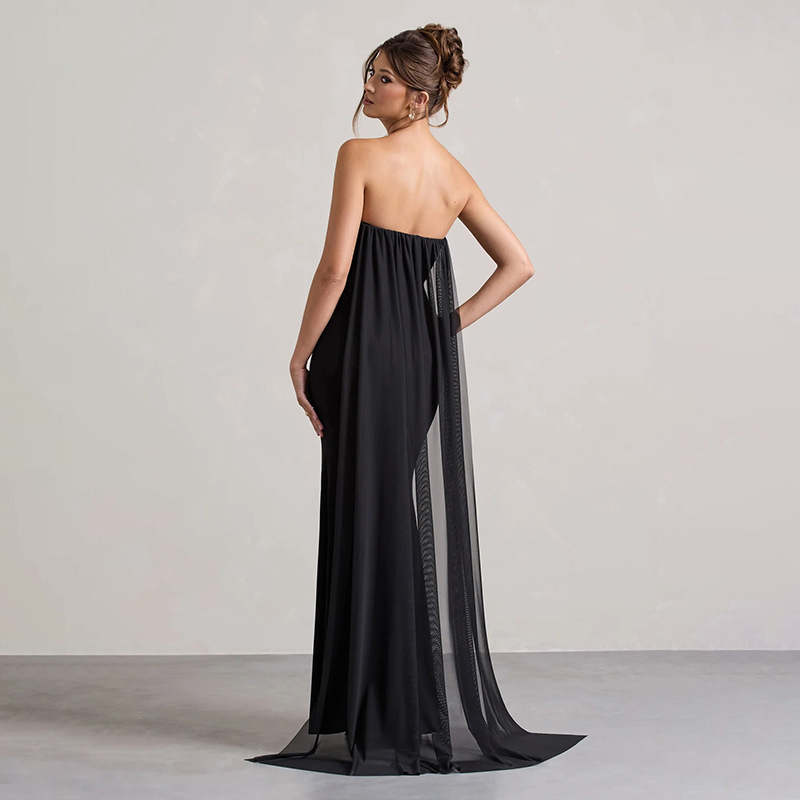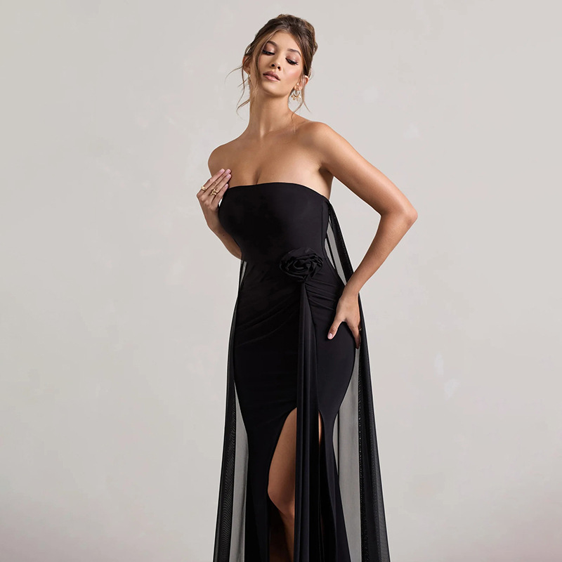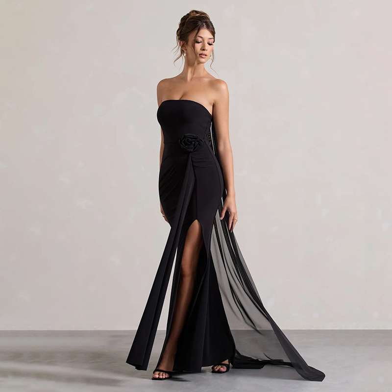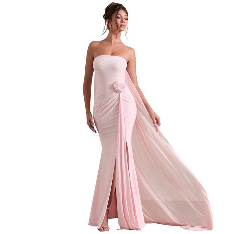 This Women Strapless Flower Ribbon Slit Dress Tailed Maxi Dress Design Made Of Good Quality Polyester And Spandex Material, Which Is Stretchy, Durable And Comfortable. The Long Evening Dresses And Gowns Is Always The main Choice For All Kinds Of Parties, Cocktail, Prom, Events, And Dating Occasions. Evening Gowns At BamBam Comes With Huge Selections - Sequins, Beaded, Satin, Velvet, Lace.... When You Need retail Evening Dresses, BamBam retail Women Garment Online Shop Is Your One-Stop Online Shopping Choice.