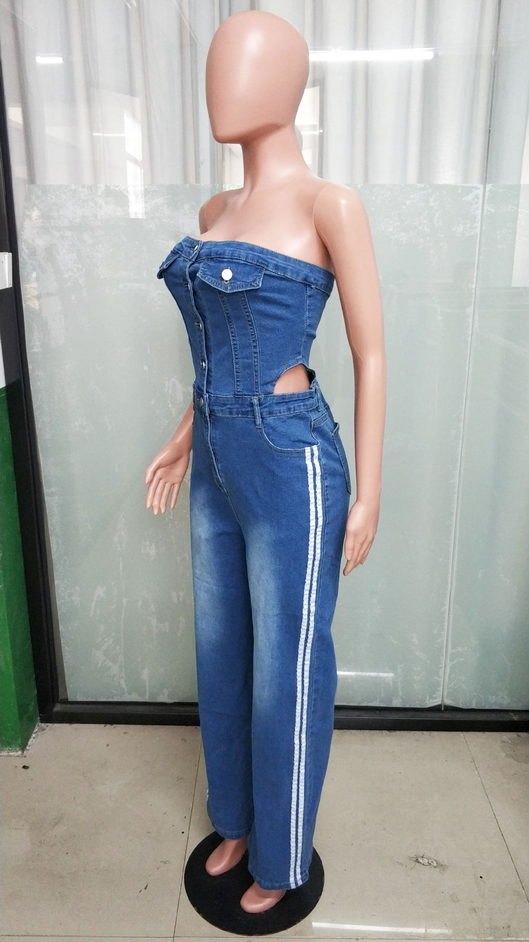 This Women Strapless Off Shoulder Denim Wide-Leg Jumpsuit Design Made Of High Quality Polyster And Spandex Material. It Is Stretchy, Durable And Comfortable. Affordable Sexy Jumpsuits For Women Has Long Been a Party Favorite. BamBam provides a Rich selection Of Sequin, Beaded, See Through Mesh, Leopard, Floral Lace, Leather, Velvet, Tight And Fitted retail Jumpsuit Without Moq Limit.