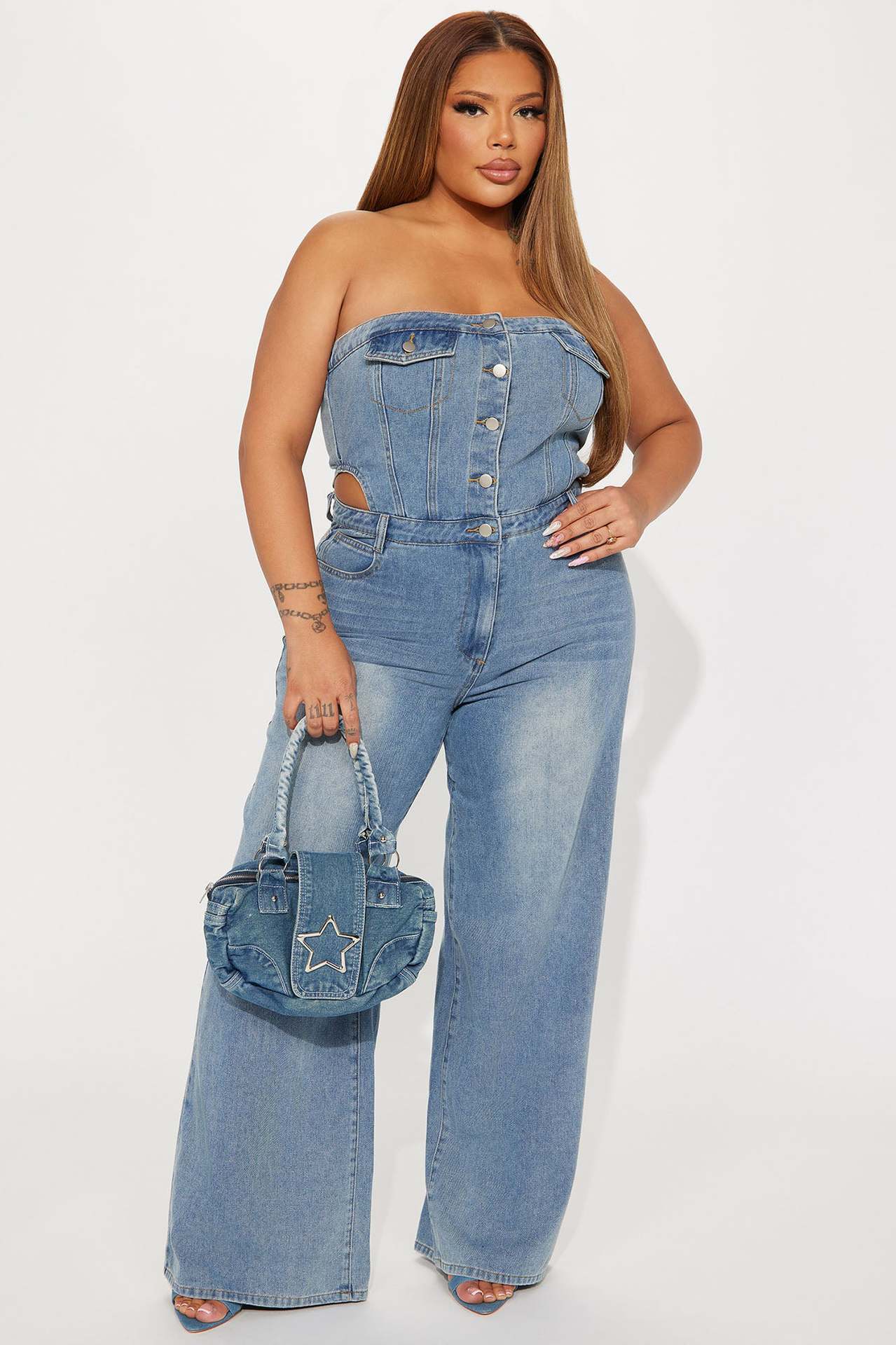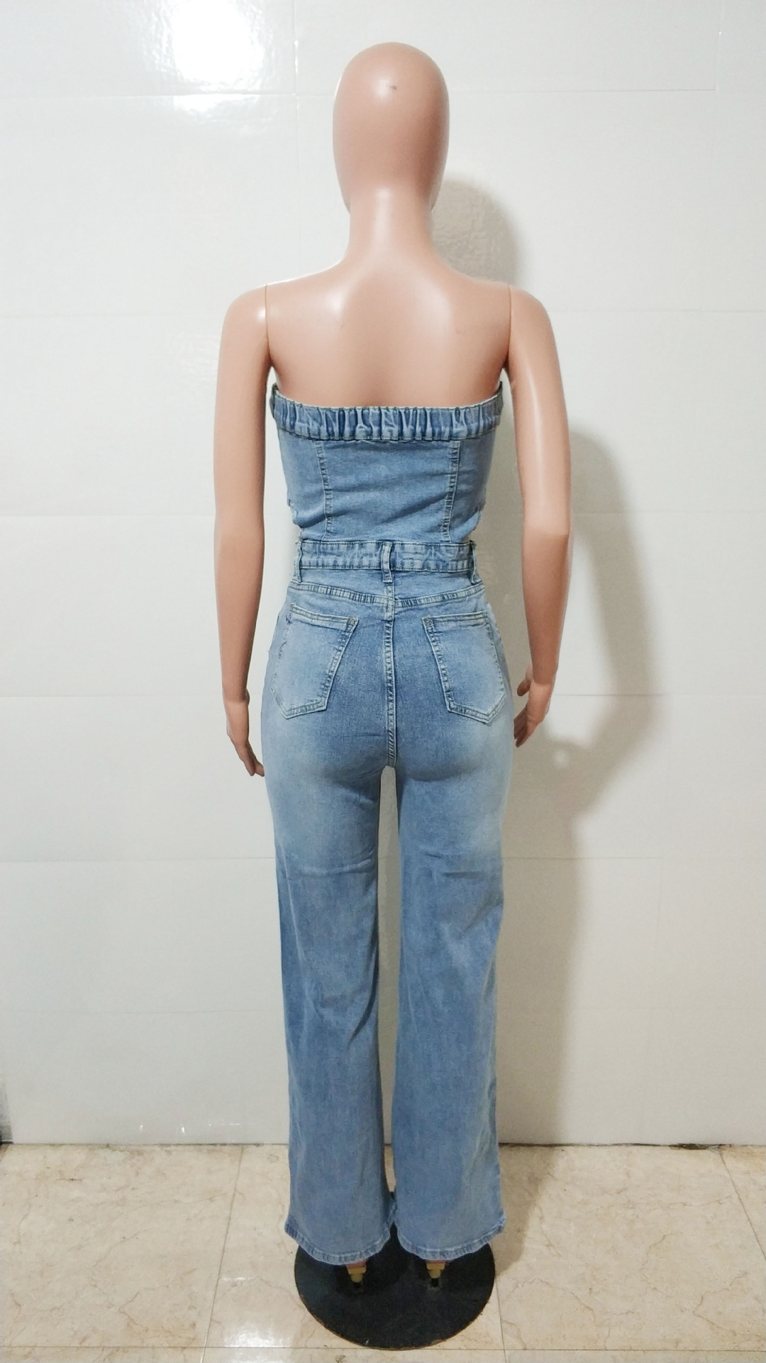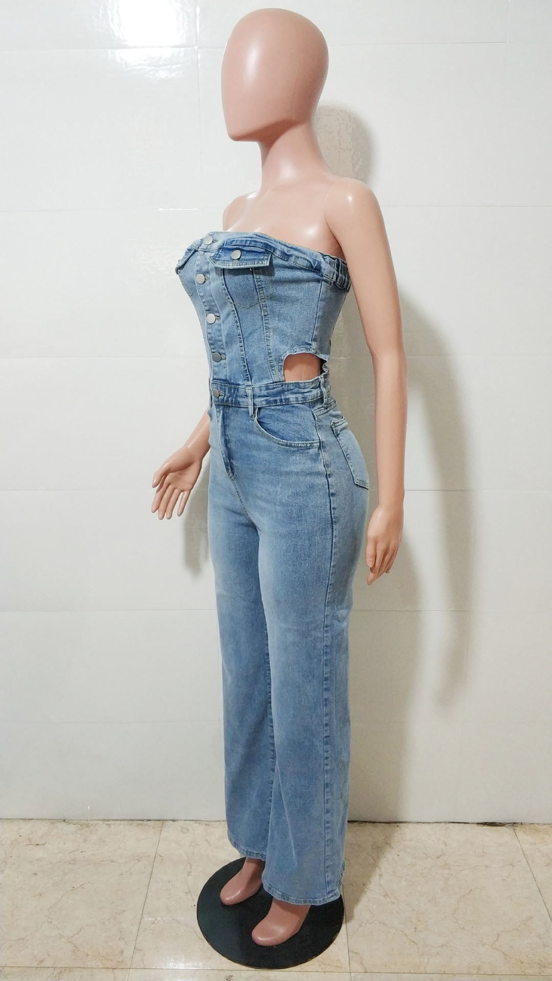 This Women Strapless Off Shoulder Wide Leg Denim Jumpsuit Design Made Of High Quality Polyster And Spandex Material. It Is Stretchy, Durable And Comfortable. Affordable Sexy Jumpsuits For Women Has Long Been a Party Favorite. BamBam provides a Rich selection Of Sequin, Beaded, See Through Mesh, Leopard, Floral Lace, Leather, Velvet, Tight And Fitted retail Jumpsuit Without Moq Limit.