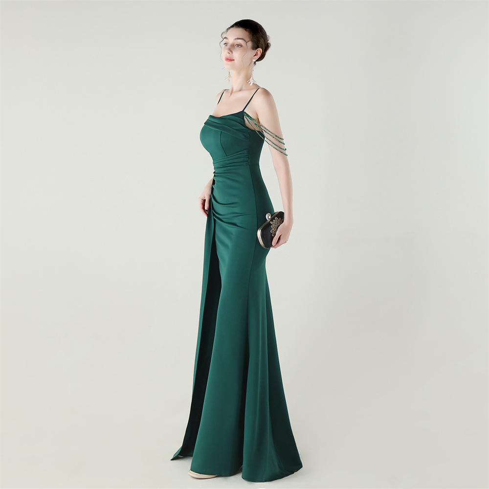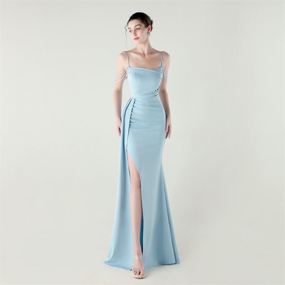 This Women Strapless Satin Beaded Chain Fishtail Evening Dress Design Made Of Good Quality Polyester And Spandex Material, Which Is Stretchy, Durable And Comfortable. The Long Evening Dresses And Gowns Is Always The main Choice For All Kinds Of Parties, Cocktail, Prom, Events, And Dating Occasions. Evening Gowns At BamBam Comes With Huge Selections - Sequins, Beaded, Satin, Velvet, Lace.... When You Need retail Evening Dresses, BamBam retail Women Garment Online Shop Is Your One-Stop Online Shopping Choice.