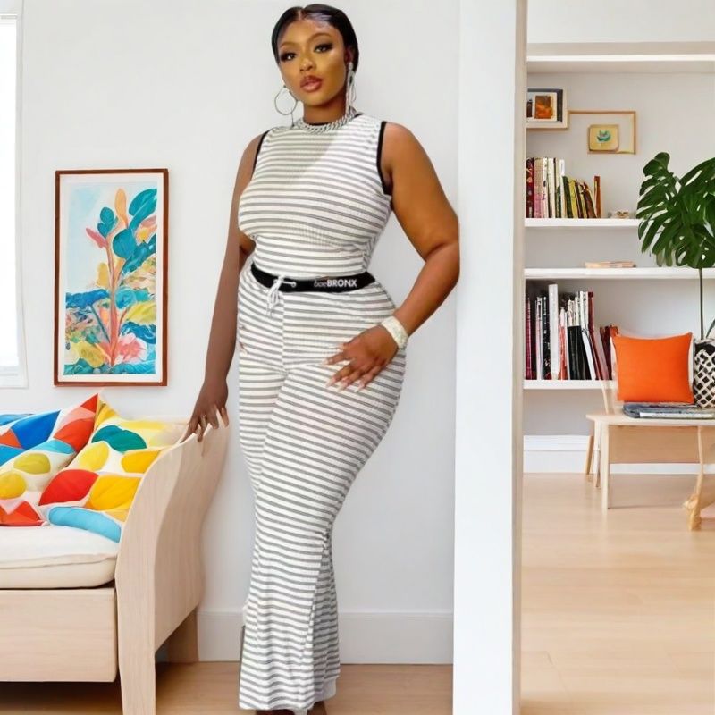 This Women Striped Knitting Tank Top And Pants Two-Piece Set Design Made Of High Quality polyester And Spandex Material. It Is Stretchy, Durable And Comfortable. It Is a Must-Have Outfit For All Seasons. retail Two Piece Pant Sets Can Solve Your cloth selection Troubles. Explore More 2 Piece Pants Set On BamBam retail Women Clothing Online Store.