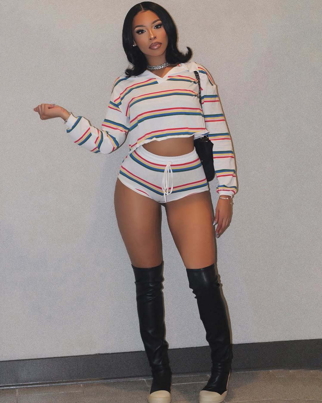 This Women Striped Print Shirt Collar Top And Lace-Up Shorts Two-Piece Set Design Made Of High Quality polyester And Spandex Material. It Is Stretchy, Durable And Comfortable. It Come With The Top And Shorts. retail Short Sets Saves Some People From The Trouble Of Matching. And For Matchmakers It Is More Flexible Than One-Piece Outfit. Two Piece Short Set Can Be Worn Together Or Individually, Ladies Can Match Them According To Different Occasions. Grab Different Two Piece Short Sets For This Spring And Summer.