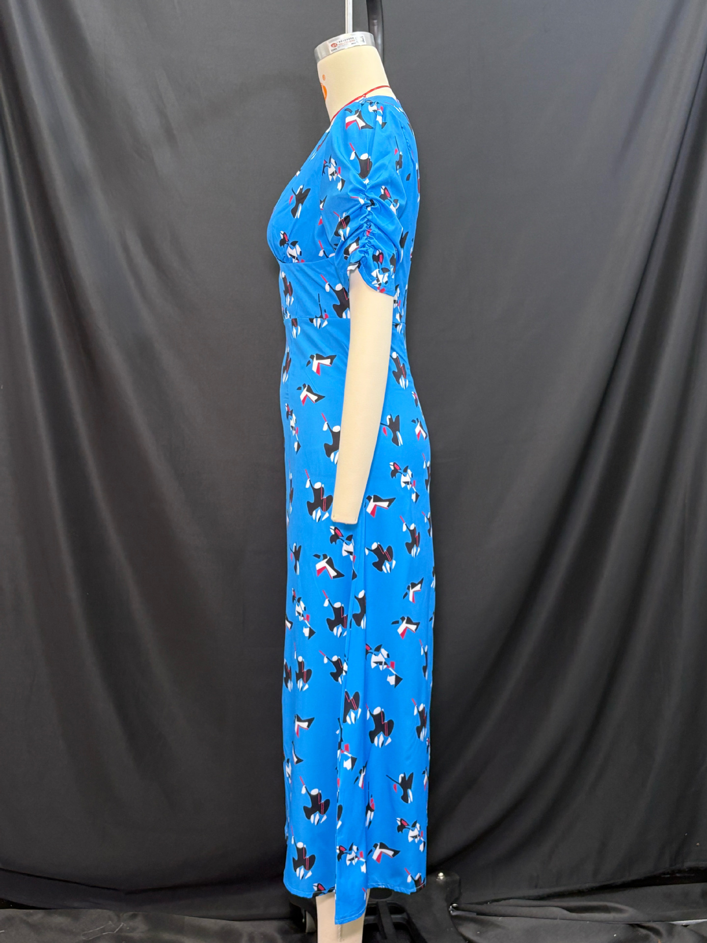 This Women Summer Blue Printed v-Neck Puff Sleeve Dress Design Made Of High Quality polyester And Spandex Material. It Is Stretchy, Durable And Comfortable. Casual Dresses With Long Sleeves Can Not Only Be Worn As Outerwear In Spring And Autumn, But Also Matching a Jacket In Winter, It Is a Must Have Item For Every Season. Grab Really Great Buy Casual Dresses For Women And Grow Your Business. No Moq In BamBam.