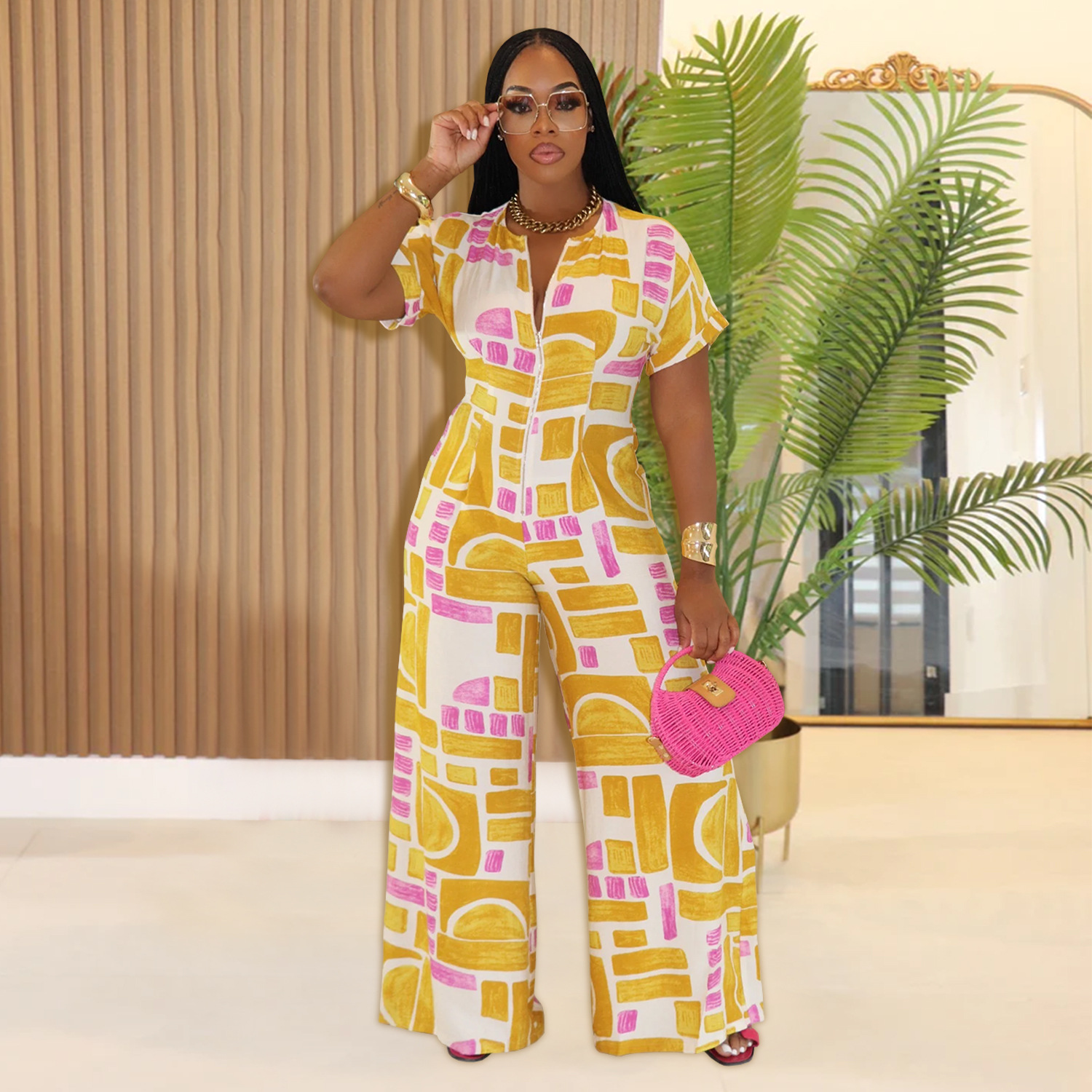 This Women Summer Casual Printed Short-Sleeved Jumpsuit Design Made Of High Quality Polyster And Spandex Material. It Is Stretchy, Durable And Comfortable. Affordable Sexy Jumpsuits For Women Has Long Been a Party Favorite. BamBam provides a Rich selection Of Sequin, Beaded, See Through Mesh, Leopard, Floral Lace, Leather, Velvet, Tight And Fitted retail Jumpsuit Without Moq Limit.