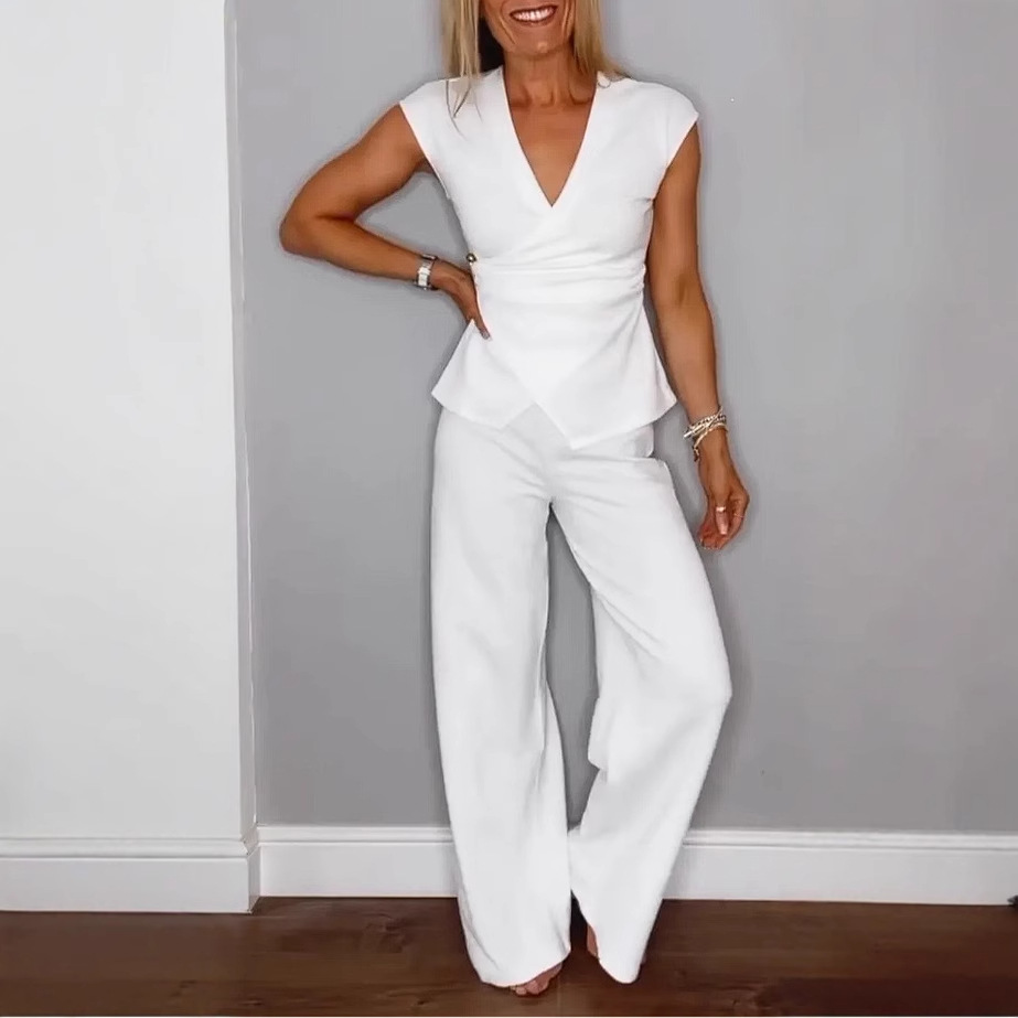 This Women Summer Casual Solid v-Neck Sleeveless Top And Pants Two-Piece Set Design Made Of High Quality polyester And Spandex Material. It Is Stretchy, Durable And Comfortable. It Is a Must-Have Outfit For All Seasons. retail Two Piece Pant Sets Can Solve Your cloth selection Troubles. Explore More 2 Piece Pants Set On BamBam retail Women Clothing Online Store.