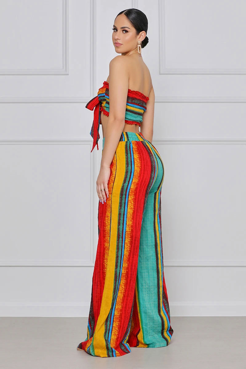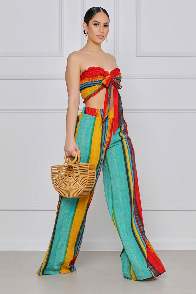 This Women Summer Colorful Striped Two-Piece Top And Pant Set Design Made Of High Quality polyester And Spandex Material. It Is Stretchy, Durable And Comfortable. It Is a Must-Have Outfit For All Seasons. retail Two Piece Pant Sets Can Solve Your cloth selection Troubles. Explore More 2 Piece Pants Set On BamBam retail Women Clothing Online Store.