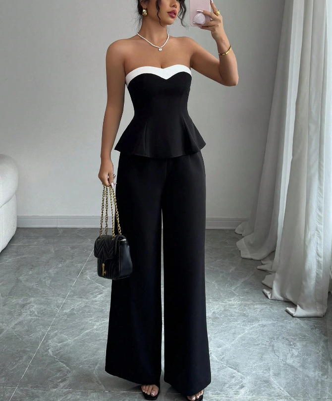 This Women Summer Elegant Strapless Contrast Color Top And Pants Two Piece Set Design Made Of High Quality polyester And Spandex Material. It Is Stretchy, Durable And Comfortable. It Is a Must-Have Outfit For All Seasons. retail Two Piece Pant Sets Can Solve Your cloth selection Troubles. Explore More 2 Piece Pants Set On BamBam retail Women Clothing Online Store.