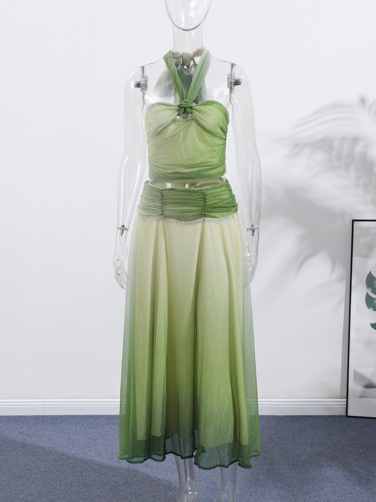 This Women Summer Gradient Halter Neck Suspender Top And Skirt Two-Piece Set Design Made Of High Quality polyester And Spandex Material. It Is Stretchy, Durable And Comfortable. It Come With The Top And Skirt Matching Set. Women’s Skirt Suit Sets Is a Great Alternative To One Piece Outfit. It Can Either Be Worn Together Or Individually, So You Can Combine Them Endlessly. Grab Different Two Piece Skirt Set retail On Our Website a Women's Clothing Store Online At Really affordable price And Enjoy fast delivery worldwide.