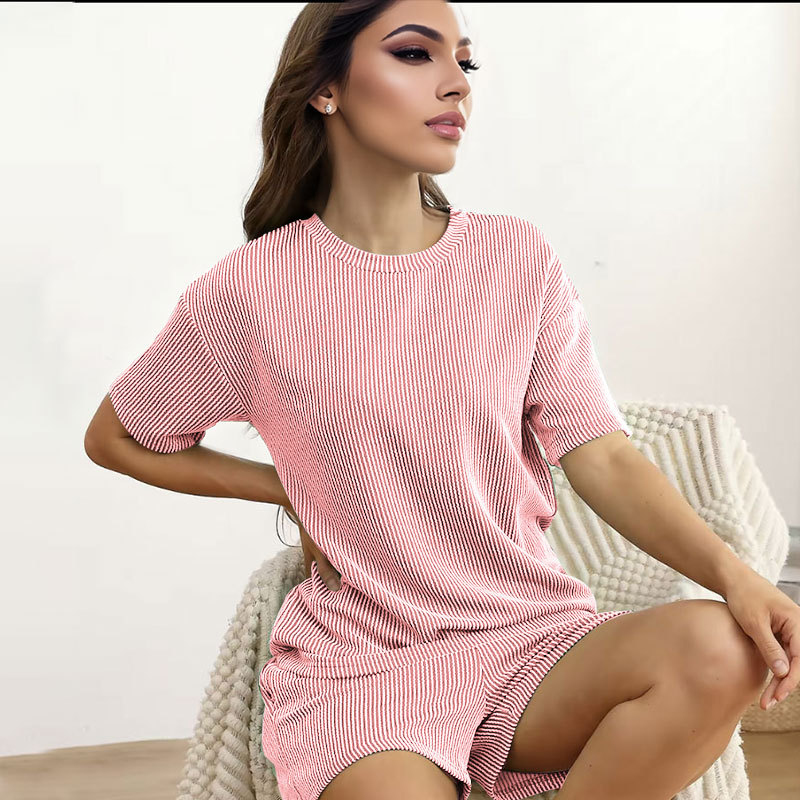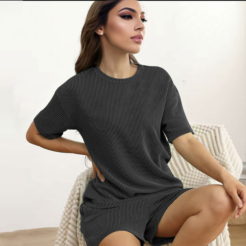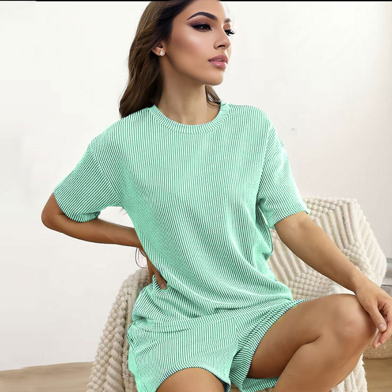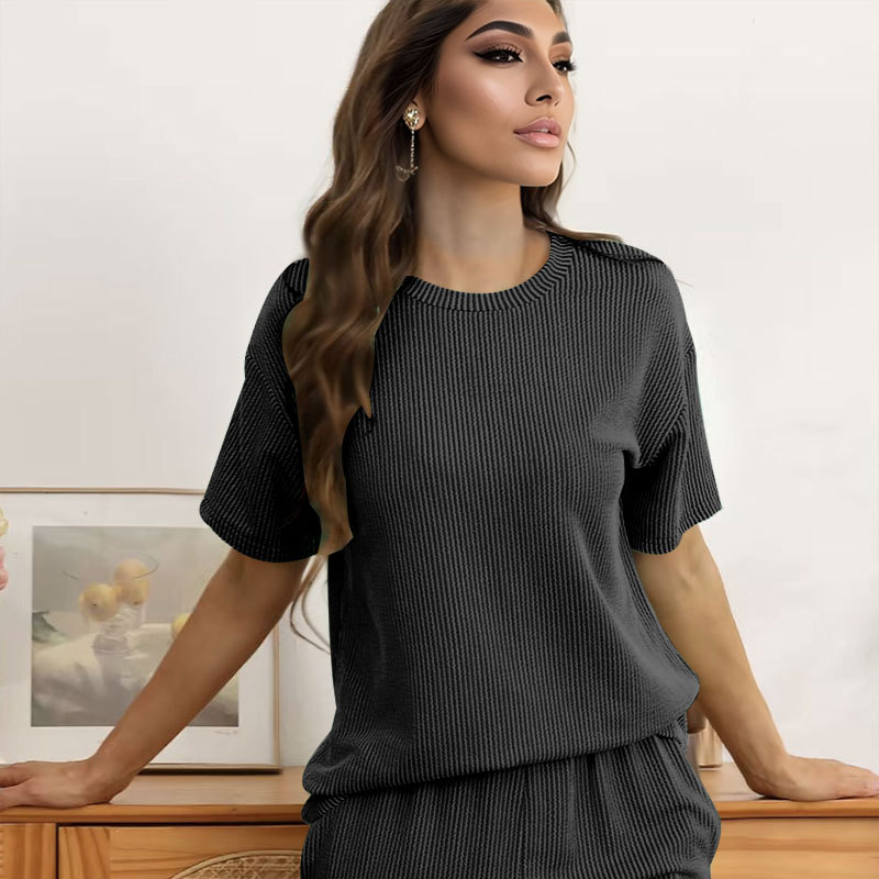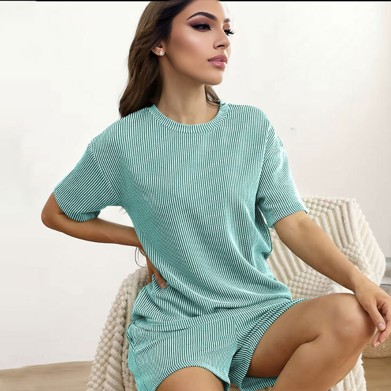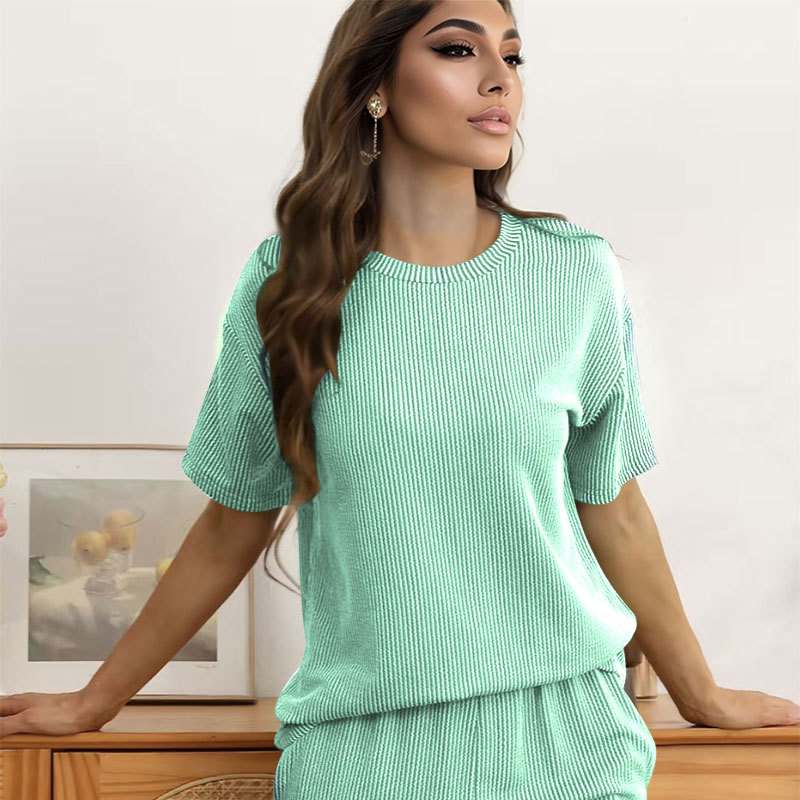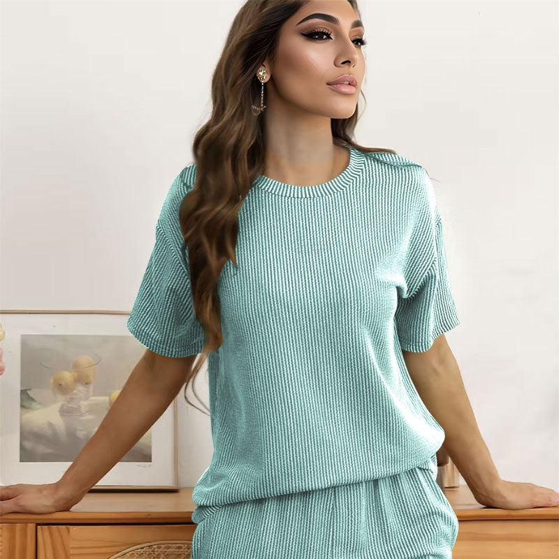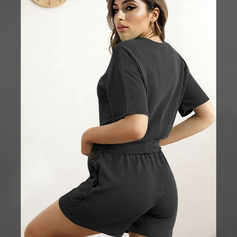 This Women Summer Knitting Casual Solid Short Sleeve Top And Shorts Two Piece Set Design Made Of High Quality polyester And Spandex Material. It Is Stretchy, Durable And Comfortable. It Come With The Top And Shorts. retail Short Sets Saves Some People From The Trouble Of Matching. And For Matchmakers It Is More Flexible Than One-Piece Outfit. Two Piece Short Set Can Be Worn Together Or Individually, Ladies Can Match Them According To Different Occasions. Grab Different Two Piece Short Sets For This Spring And Summer.