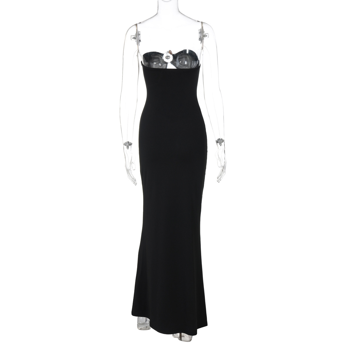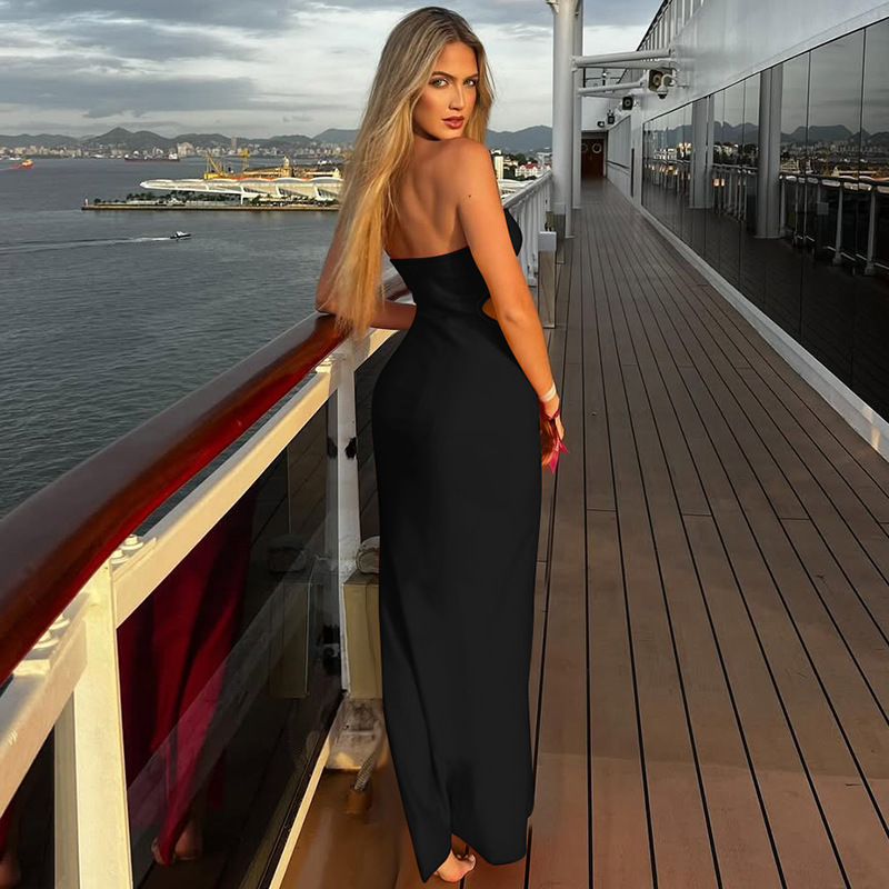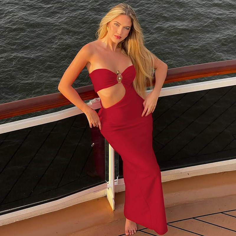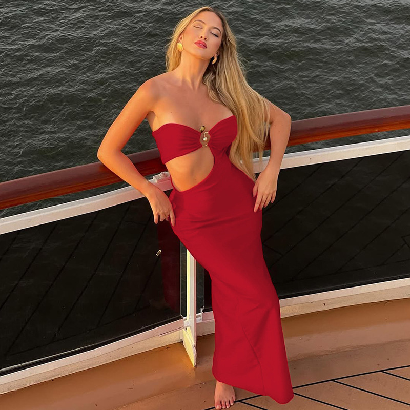 This Women Summer Metal Decoration Patchwork Hollow Sexy Strapless Maxi Dress Design Made Of Good Quality polyester And Spandex Material, Which Is Stretchy, Durable And Comfortable. The Long Evening Dresses And Gowns Is Always The main Choice For All Kinds Of Parties, Cocktail, Prom, Events, And Dating Occasions. Evening Gowns At BamBam Comes With Huge Selections - Sequins, Beaded, Satin, Velvet, Lace.... When You Need retail Evening Dresses, BamBam retail Women Garment Online Shop Is Your One-Stop Online Shopping Choice.