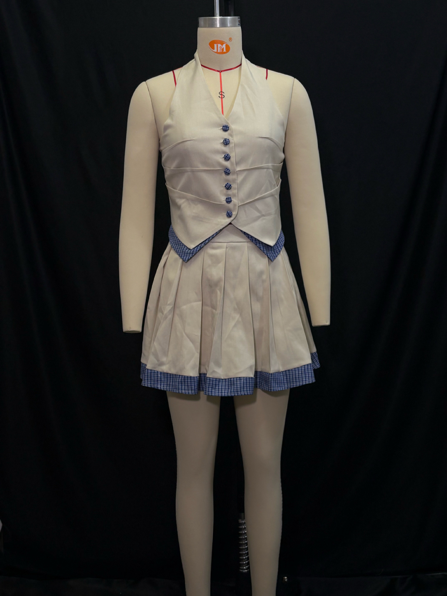 This Women Summer Off-White And Blue Plaid Patchwork Halter Neck v-Neck Button Top And Skirt Two-Piece Set Design Made Of High Quality polyester And Spandex Material. It Is Stretchy, Durable And Comfortable. It Come With The Top And Skirt Matching Set. Women’s Skirt Suit Sets Is a Great Alternative To One Piece Outfit. It Can Either Be Worn Together Or Individually, So You Can Combine Them Endlessly. Grab Different Two Piece Skirt Set retail On Our Website a Women's Clothing Store Online At Really affordable price And Enjoy fast delivery worldwide.