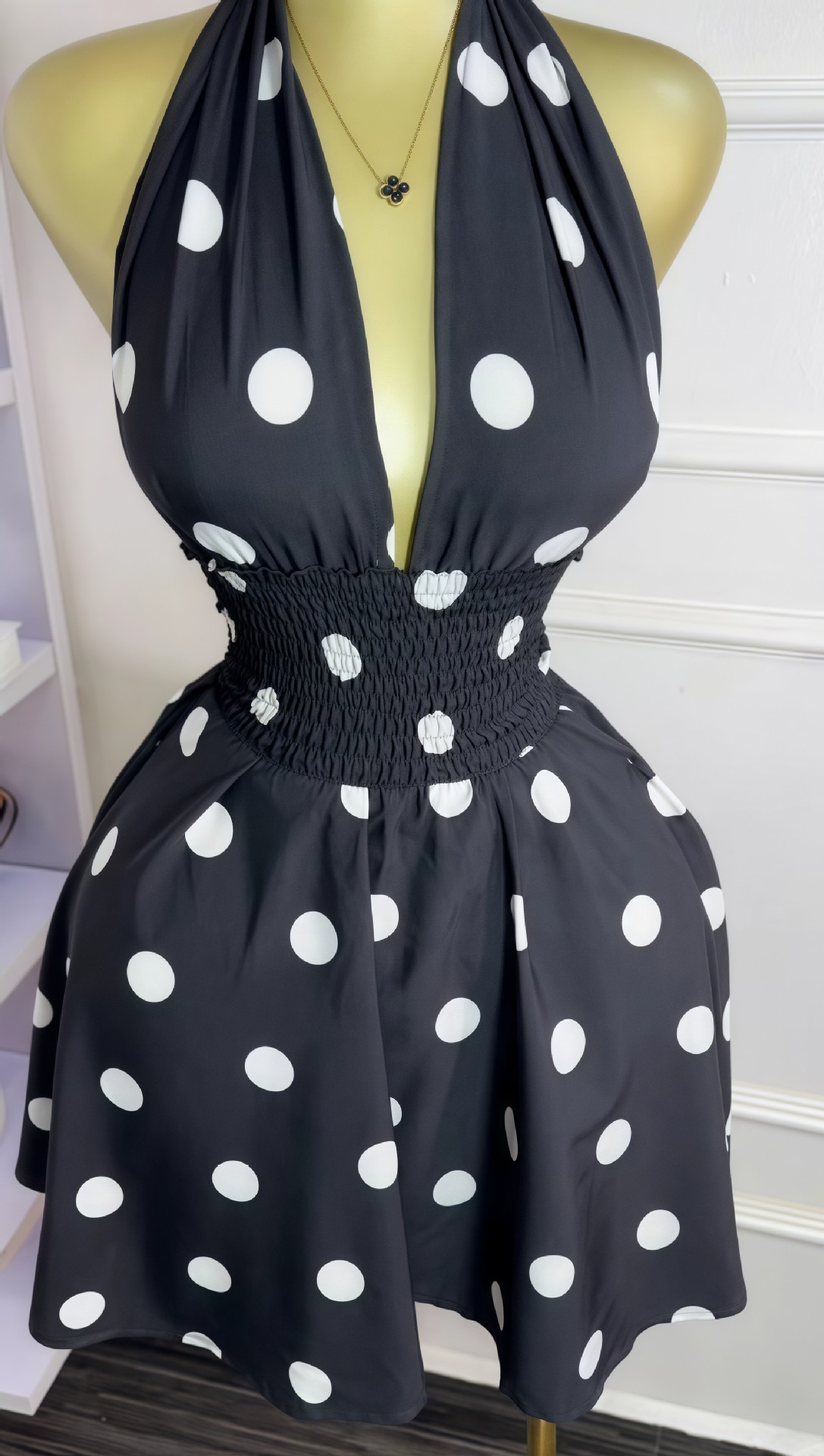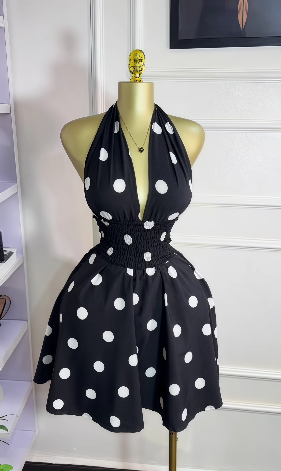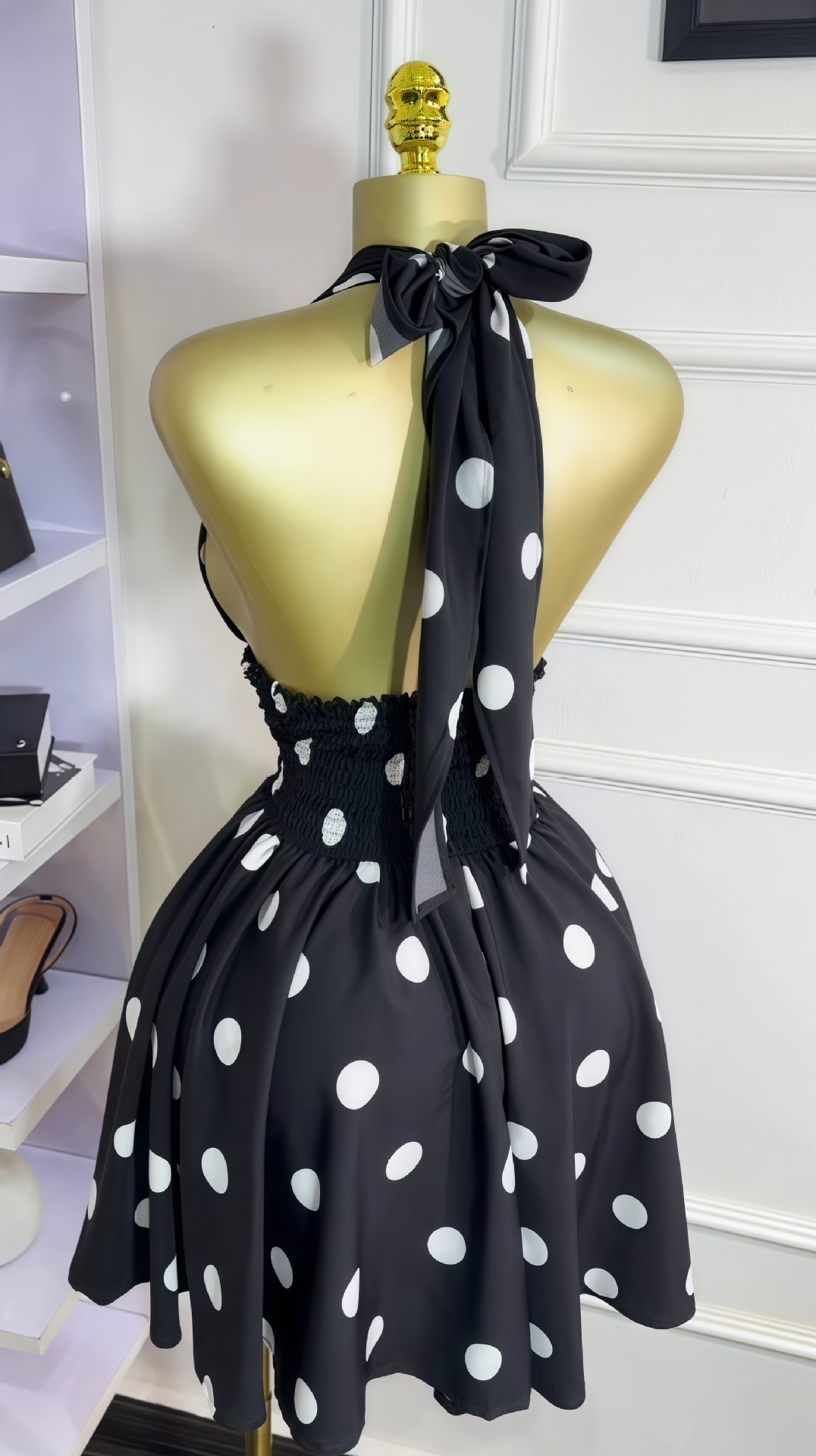 This Women Summer Polka Dot Sleeveless v-Neck Lace-Up Backless Mini Dress Design Made Of High Quality polyester And Spandex Material. It Is Stretchy, Durable And Comfortable. Casual Dresses With Long Sleeves Can Not Only Be Worn As Outerwear In Spring And Autumn, But Also Matching a Jacket In Winter, It Is a Must Have Item For Every Season. Grab Really Great Buy Casual Dresses For Women And Grow Your Business. No Moq In BamBam.