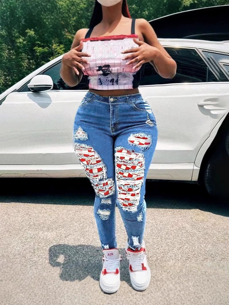 This Women Summer Red Plaid Patchwork Ripped Casual Stretch Denim Pants Design Made Of Durable And Stretchy Jeans Fabric. It Is a Must-Have Item For everyday use. Trendy retail Jeans Is a Indispensable Item For Everyday Fashion. Women’s Jeans With High Waist Is a Must Have trouser/pant that helps bring the grace of shape of your legs out even more and fits perfectly snugging your thighs and body gracefully. Grab a Must Have High Waist Jeans retail For Your Closet, Just Choose Different Matching Tops To stay in control of Every Occasion Easily.