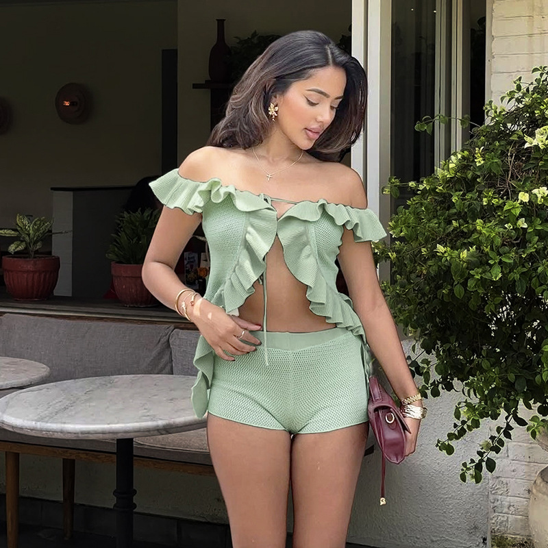 This Women Summer Sexy Off Shoulder Lace-Up Crop Top Shorts Two-Piece Set Design Made Of High Quality polyester And Spandex Material. It Is Stretchy, Durable And Comfortable. It Come With The Top And Shorts. retail Short Sets Saves Some People From The Trouble Of Matching. And For Matchmakers It Is More Flexible Than One-Piece Outfit. Two Piece Short Set Can Be Worn Together Or Individually, Ladies Can Match Them According To Different Occasions. Grab Different Two Piece Short Sets For This Spring And Summer.