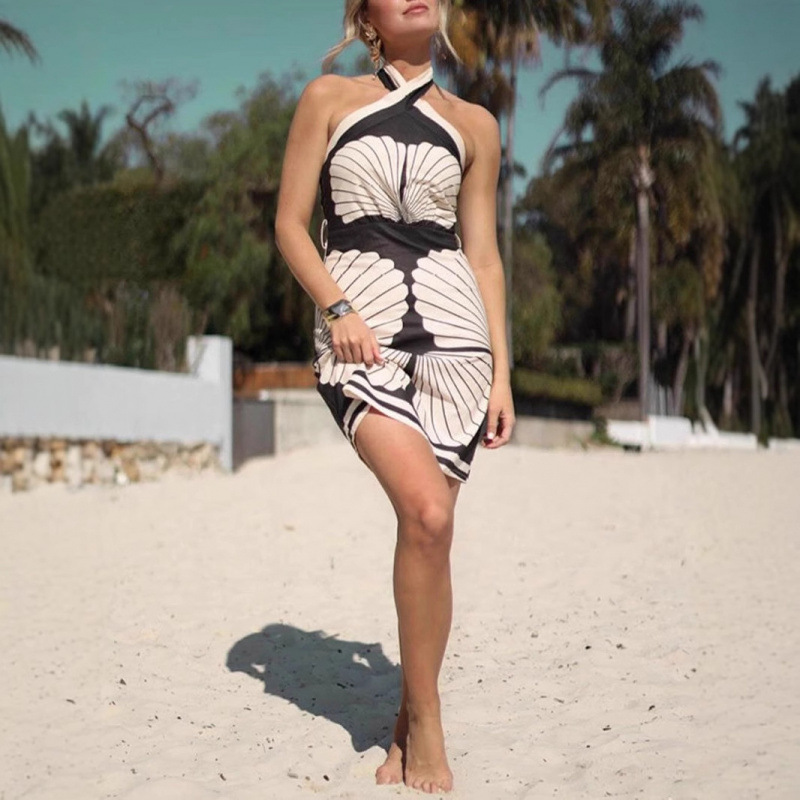 This Women Summer Sexy Shell Print Halter Neck Lace-Up Dress Design Made Of High Quality polyester And Spandex Material. It Is Stretchy, Durable And Comfortable. Casual Dresses With Long Sleeves Can Not Only Be Worn As Outerwear In Spring And Autumn, But Also Matching a Jacket In Winter, It Is a Must Have Item For Every Season. Grab Really Great Buy Casual Dresses For Women And Grow Your Business. No Moq In BamBam.