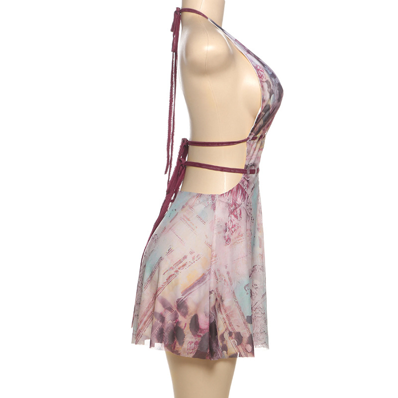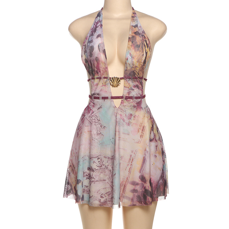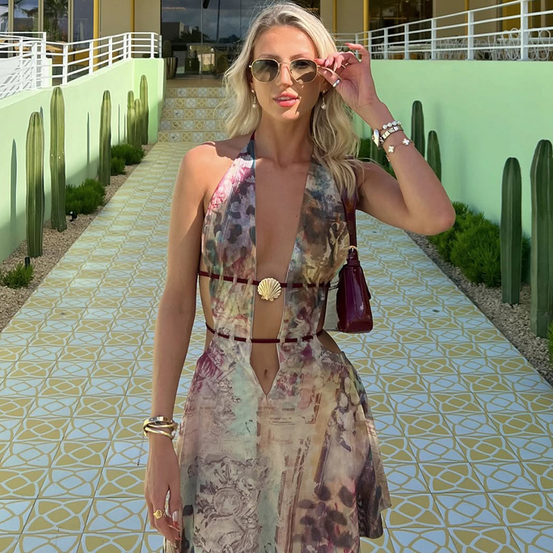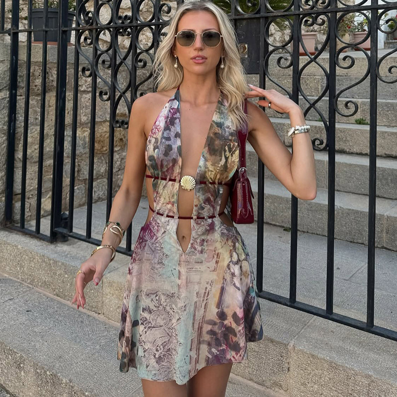 This Women Summer Sexy v Neck Halter Neck Backless Print Dress Design Made Of High Quality polyester And Spandex Material. It Is Stretchy, Durable And Comfortable. Casual Dresses With Long Sleeves Can Not Only Be Worn As Outerwear In Spring And Autumn, But Also Matching a Jacket In Winter, It Is a Must Have Item For Every Season. Grab Really Great Buy Casual Dresses For Women And Grow Your Business. No Moq In BamBam.