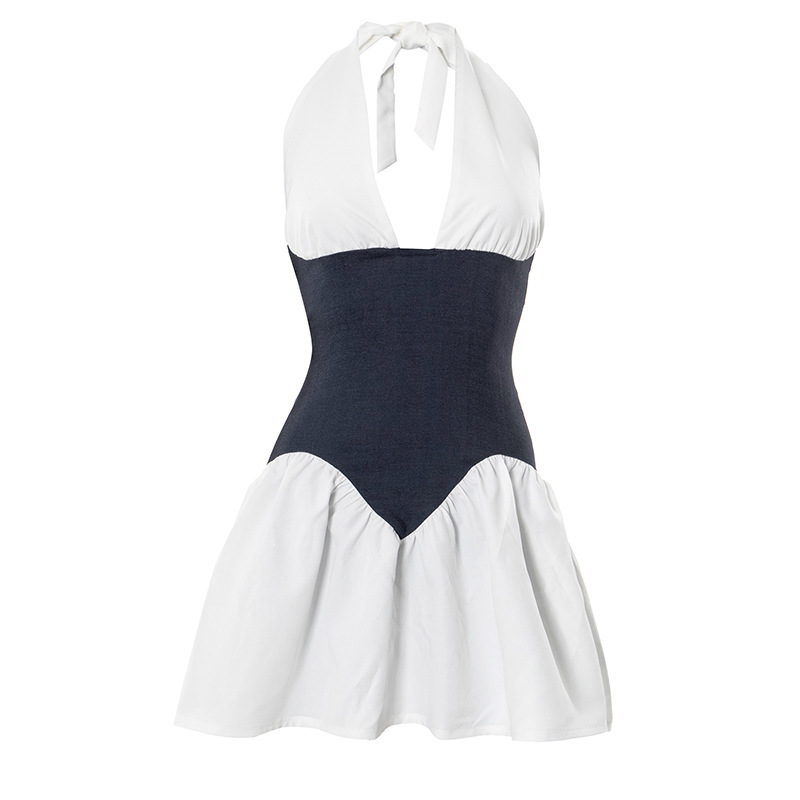 This Women Summer Sexy v-Neck Halter Neck Lace-Up Backless Color-Contrast Dress Design Made Of High Quality polyester And Spandex Material. It Is Stretchy, Durable And Comfortable. Casual Dresses With Long Sleeves Can Not Only Be Worn As Outerwear In Spring And Autumn, But Also Matching a Jacket In Winter, It Is a Must Have Item For Every Season. Grab Really Great Buy Casual Dresses For Women And Grow Your Business. No Moq In BamBam.