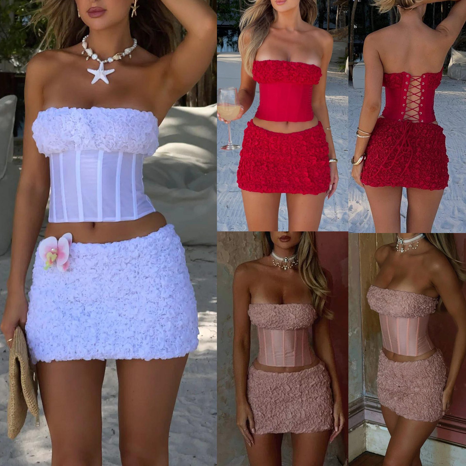 This Women Summer Strapless Crop Top And Mini Skirt Two-Piece Set Design Made Of High Quality polyester And Spandex Material. It Is Stretchy, Durable And Comfortable. It Come With The Top And Skirt Matching Set. Women’s Skirt Suit Sets Is a Great Alternative To One Piece Outfit. It Can Either Be Worn Together Or Individually, So You Can Combine Them Endlessly. Grab Different Two Piece Skirt Set retail On Our Website a Women's Clothing Store Online At Really affordable price And Enjoy fast delivery worldwide.