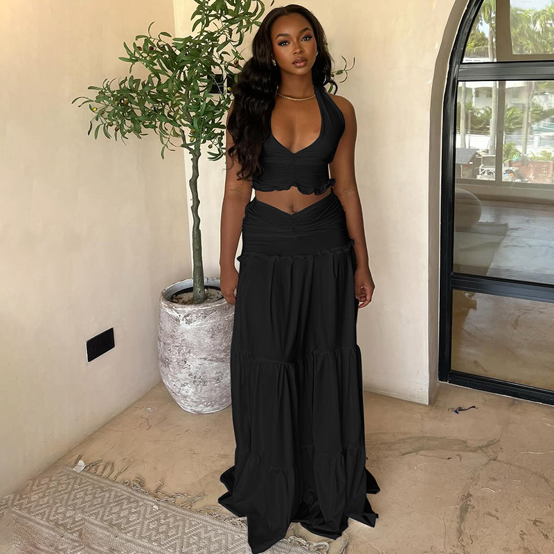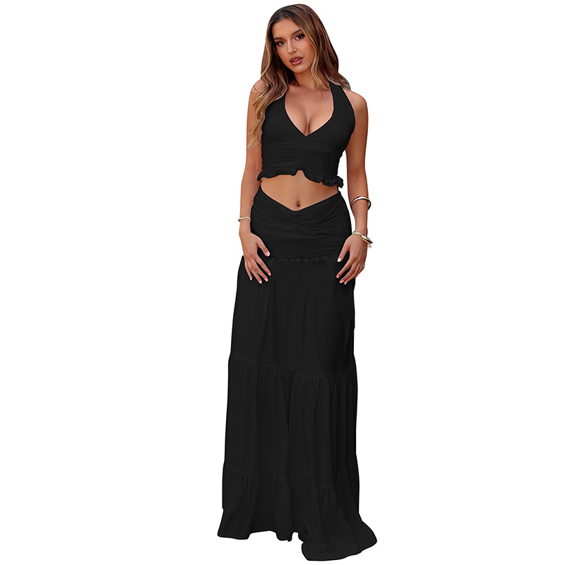 This Women Summer Tie Halter Neck Vest Pleated Skirt Two-Piece Set Design Made Of High Quality polyester And Spandex Material. It Is Stretchy, Durable And Comfortable. It Come With The Top And Skirt Matching Set. Women’s Skirt Suit Sets Is a Great Alternative To One Piece Outfit. It Can Either Be Worn Together Or Individually, So You Can Combine Them Endlessly. Grab Different Two Piece Skirt Set retail On Our Website a Women's Clothing Store Online At Really affordable price And Enjoy fast delivery worldwide.