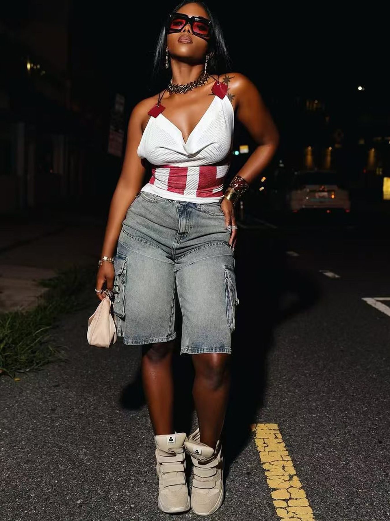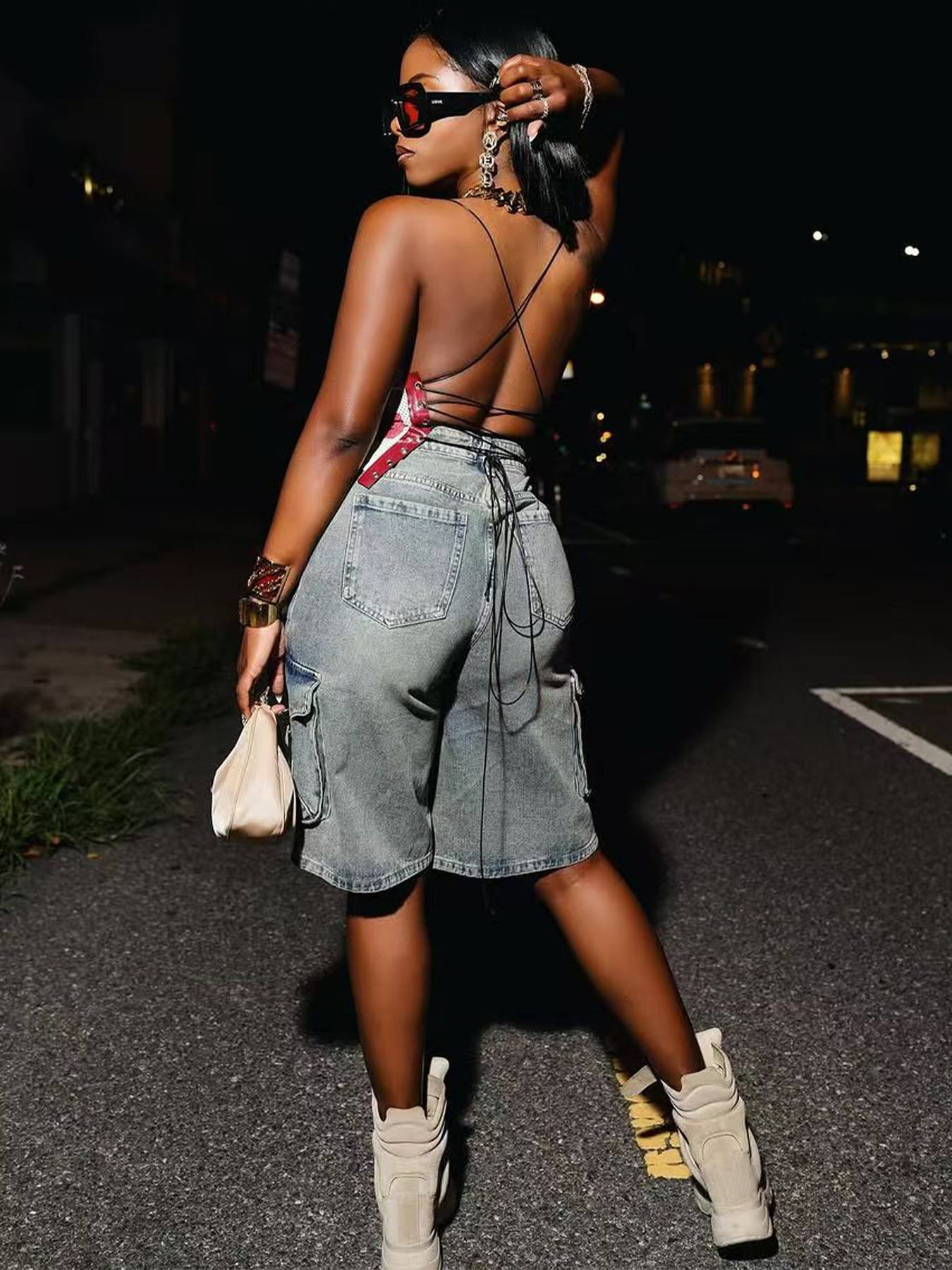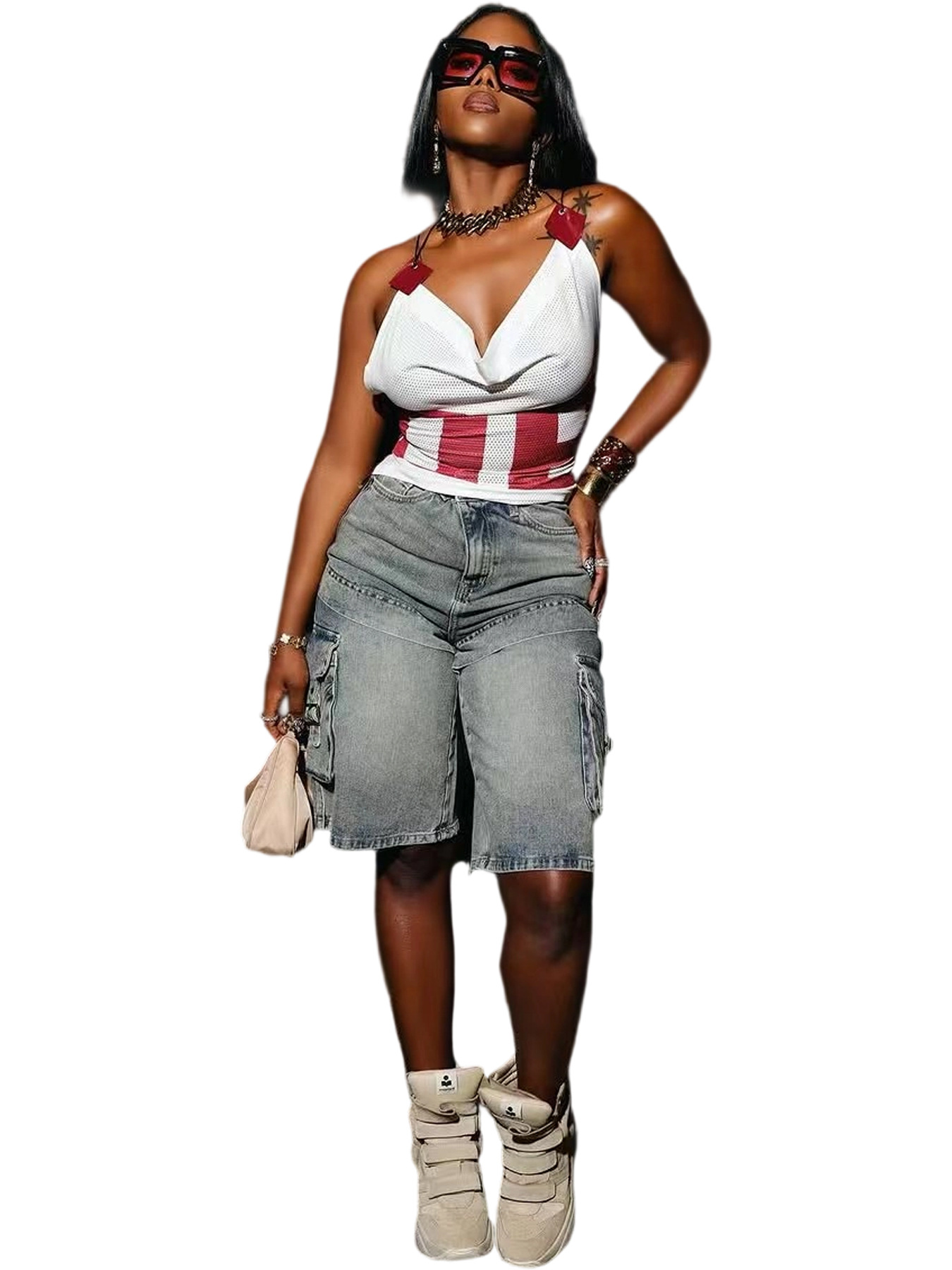 This Women Summer Trendy Cargo Denim Shorts Design Made Of Durable And Stretchy Jeans Fabric. It Is a Must-Have Item For everyday use. Trendy retail Jeans Is a Indispensable Item For Everyday Fashion. Women’s Jeans With High Waist Is a Must Have trouser/pant that helps bring the grace of shape of your legs out even more and fits perfectly snugging your thighs and body gracefully. Grab a Must Have High Waist Jeans retail For Your Closet, Just Choose Different Matching Tops To stay in control of Every Occasion Easily.