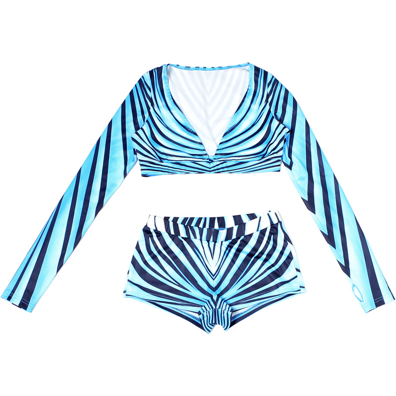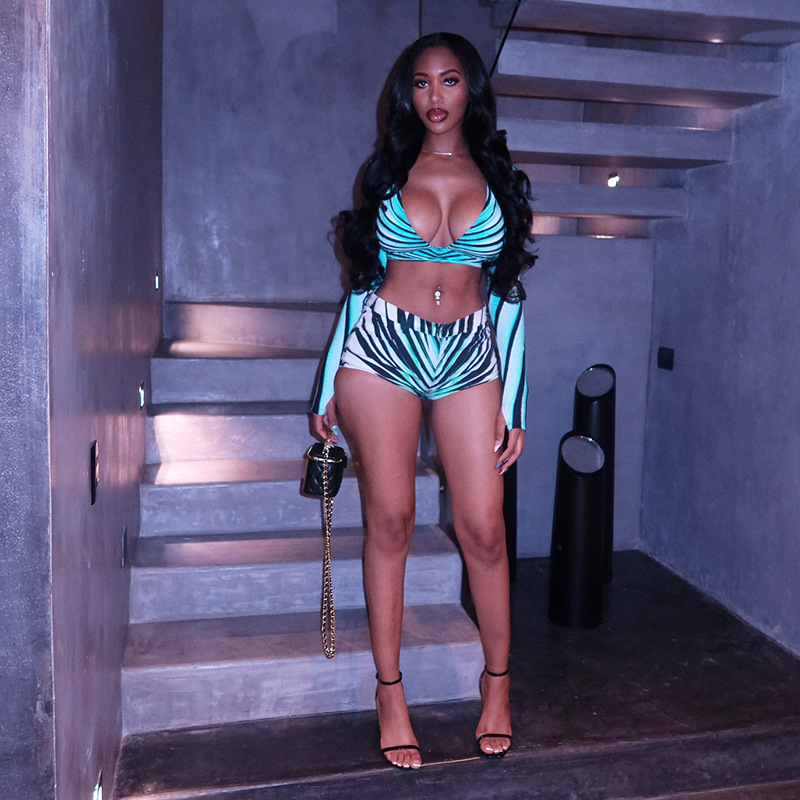 This Women Summer Trendy Sexy Striped Long-Sleeved Top And Shorts Two-Piece Set Design Made Of High Quality polyester And Spandex Material. It Is Stretchy, Durable And Comfortable. It Come With The Top And Shorts. retail Short Sets Saves Some People From The Trouble Of Matching. And For Matchmakers It Is More Flexible Than One-Piece Outfit. Two Piece Short Set Can Be Worn Together Or Individually, Ladies Can Match Them According To Different Occasions. Grab Different Two Piece Short Sets For This Spring And Summer.