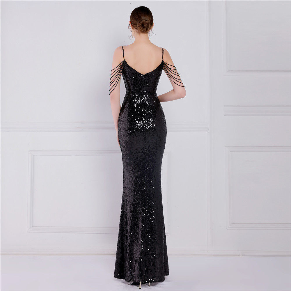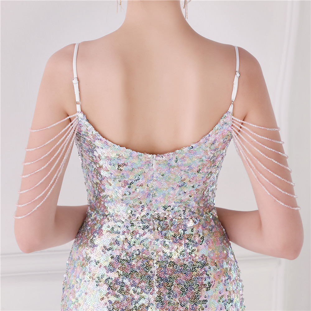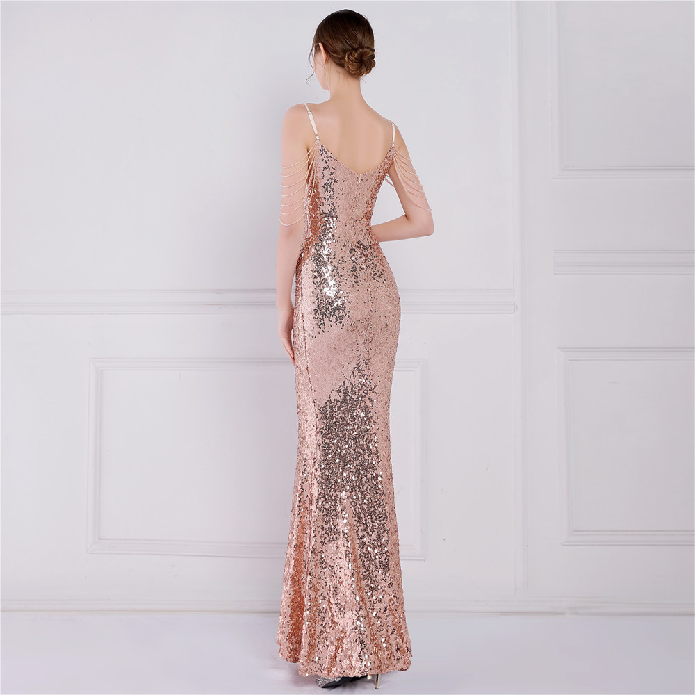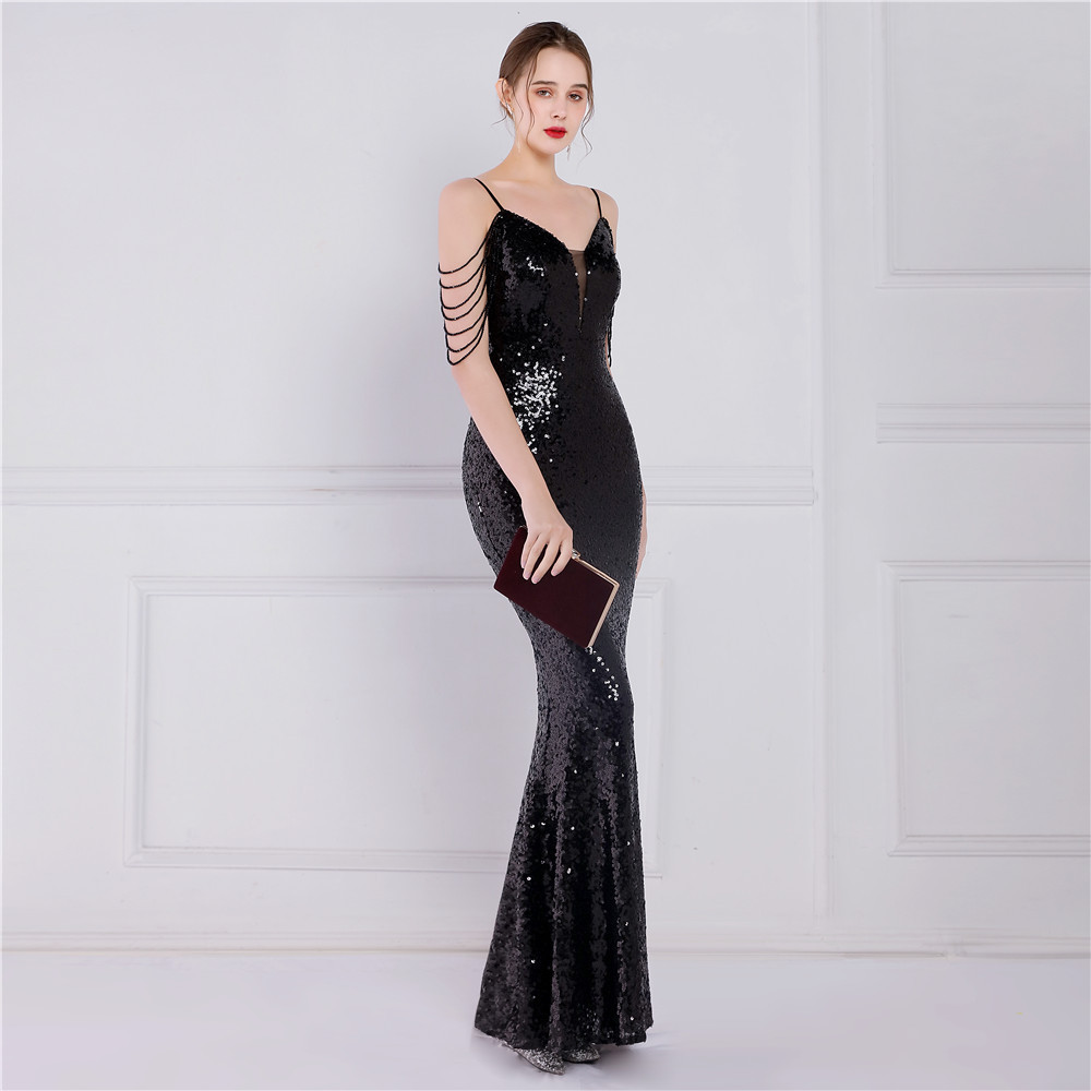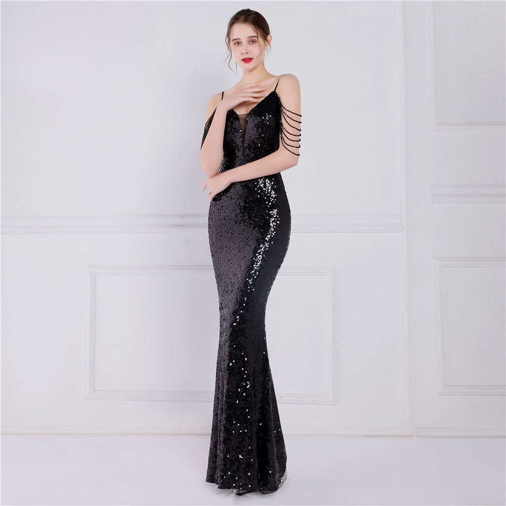 This Women Summer Vintage Strap Sleeveless Solid Sequined Mermaid Evening Dress Design Made Of Good Quality Polyester And Spandex Material, Which Is Stretchy, Durable And Comfortable. The Long Evening Dresses And Gowns Is Always The main Choice For All Kinds Of Parties, Cocktail, Prom, Events, And Dating Occasions. Evening Gowns At BamBam Comes With Huge Selections - Sequins, Beaded, Satin, Velvet, Lace.... When You Need retail Evening Dresses, BamBam retail Women Garment Online Shop Is Your One-Stop Online Shopping Choice.