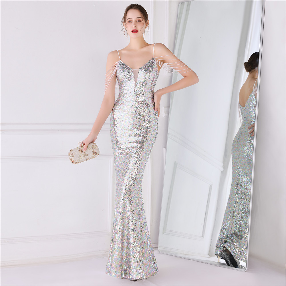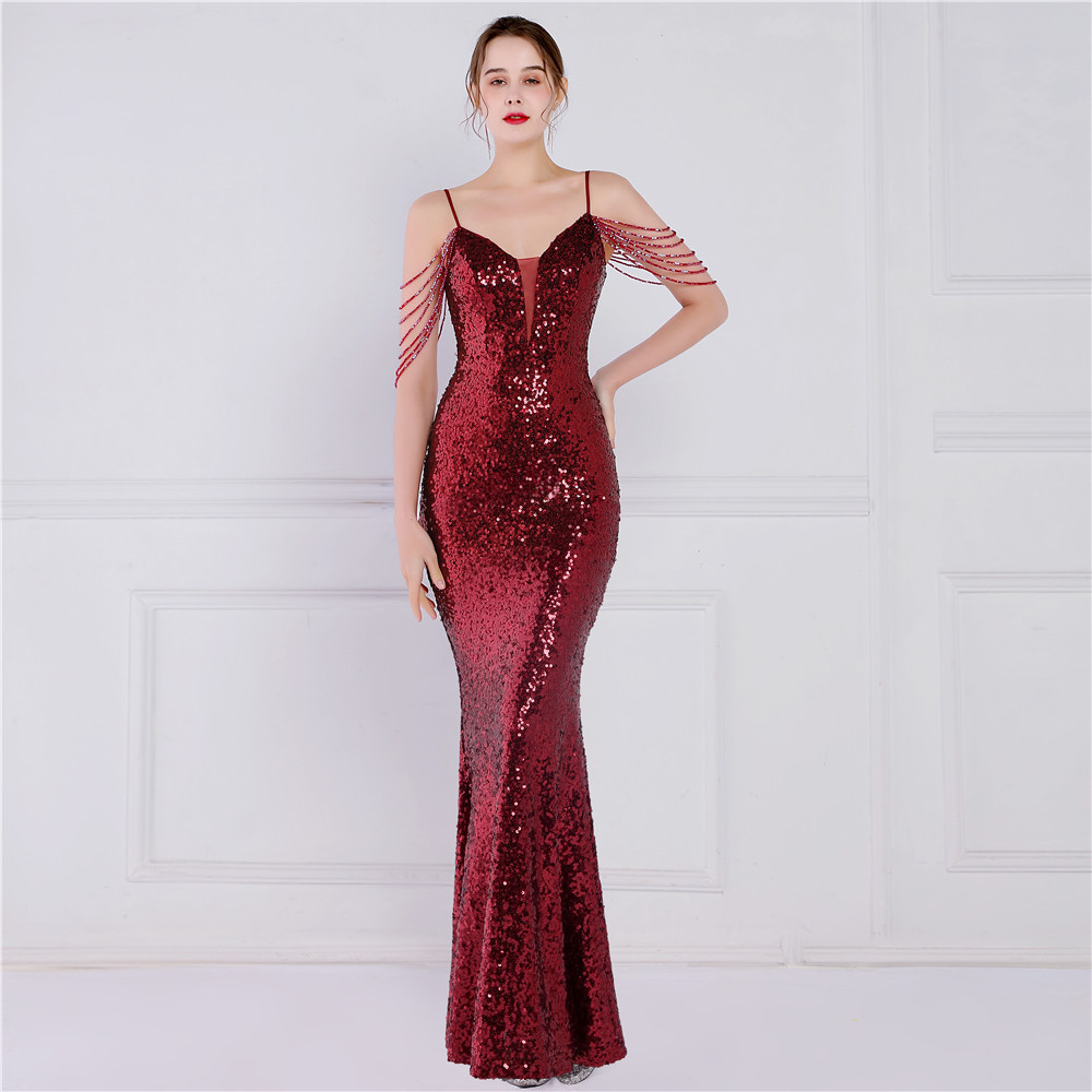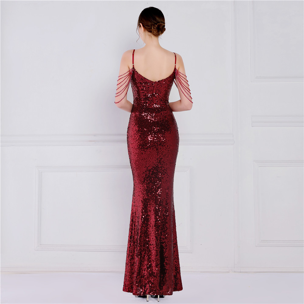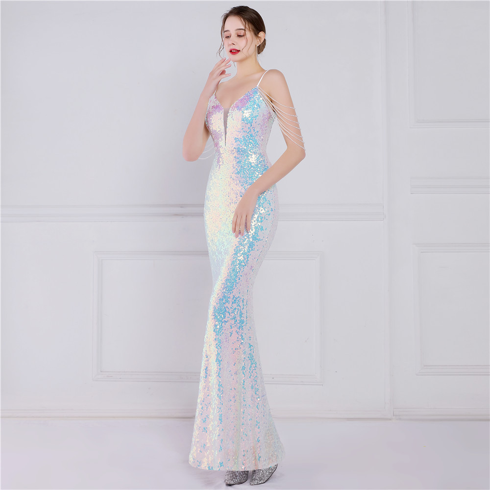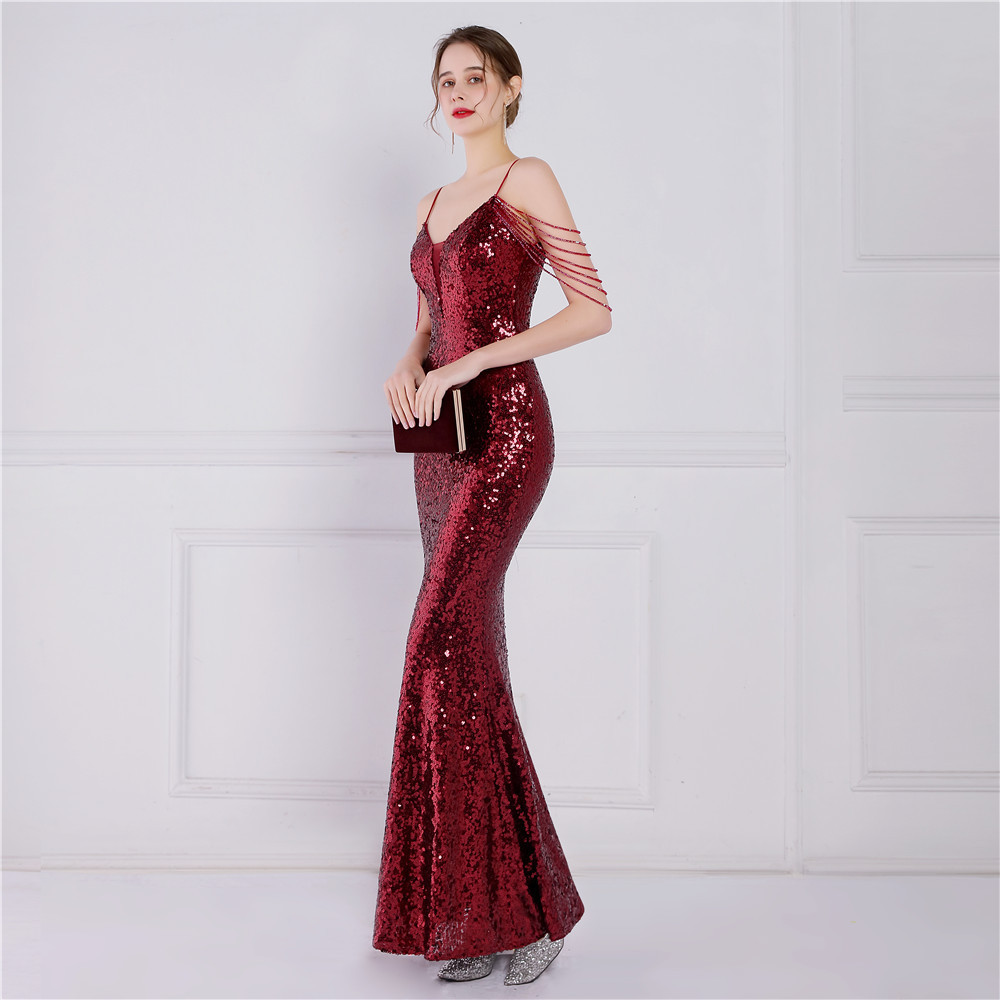 This Women Summer Vintage Strap Sleeveless Solid Sequined Mermaid Evening Dress Design Made Of Good Quality Polyester And Spandex Material, Which Is Stretchy, Durable And Comfortable. The Long Evening Dresses And Gowns Is Always The main Choice For All Kinds Of Parties, Cocktail, Prom, Events, And Dating Occasions. Evening Gowns At BamBam Comes With Huge Selections - Sequins, Beaded, Satin, Velvet, Lace.... When You Need retail Evening Dresses, BamBam retail Women Garment Online Shop Is Your One-Stop Online Shopping Choice.