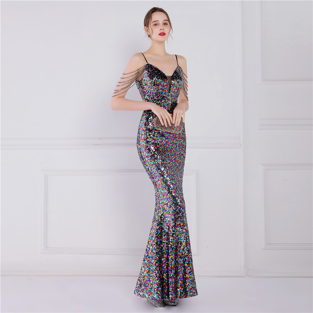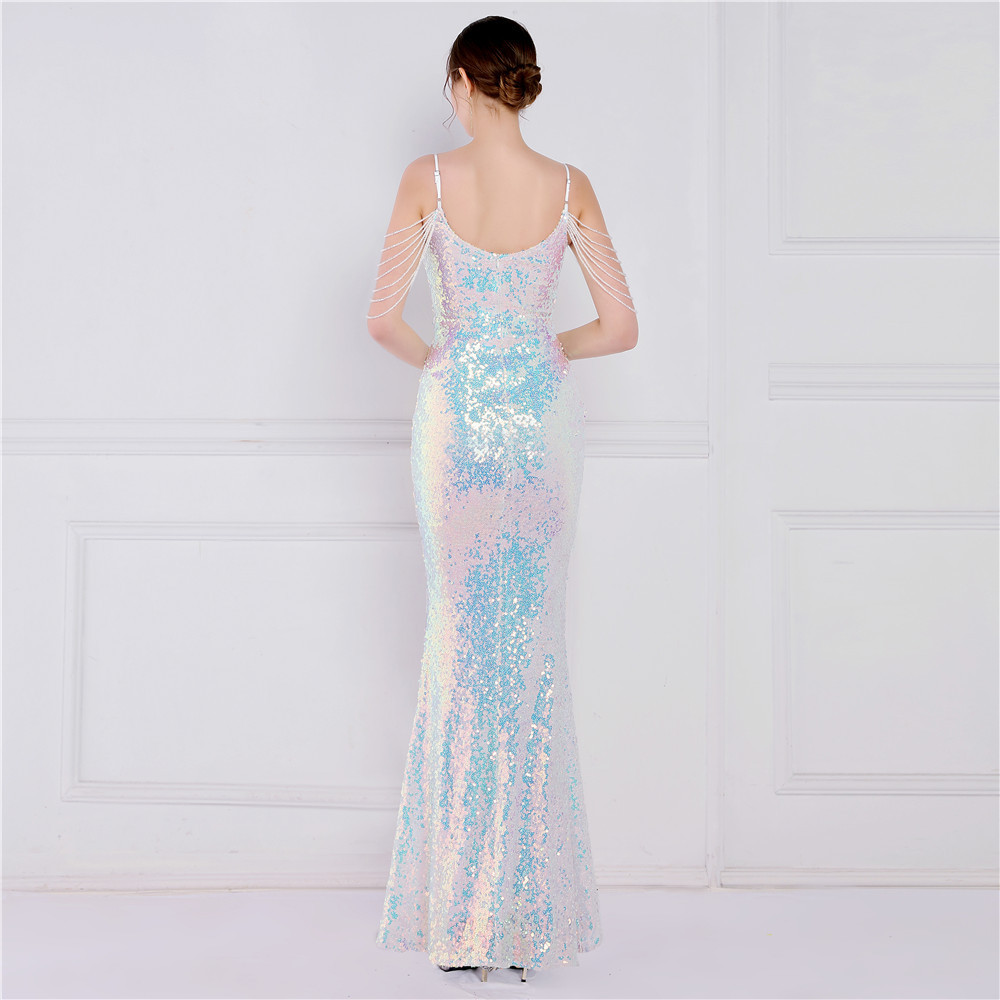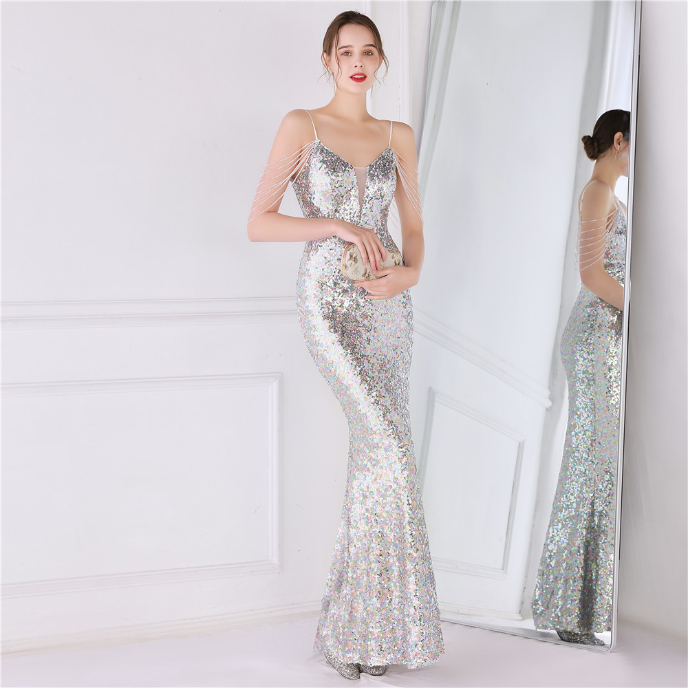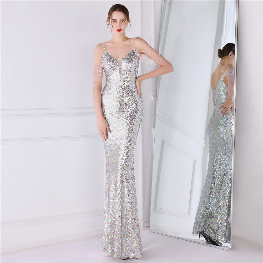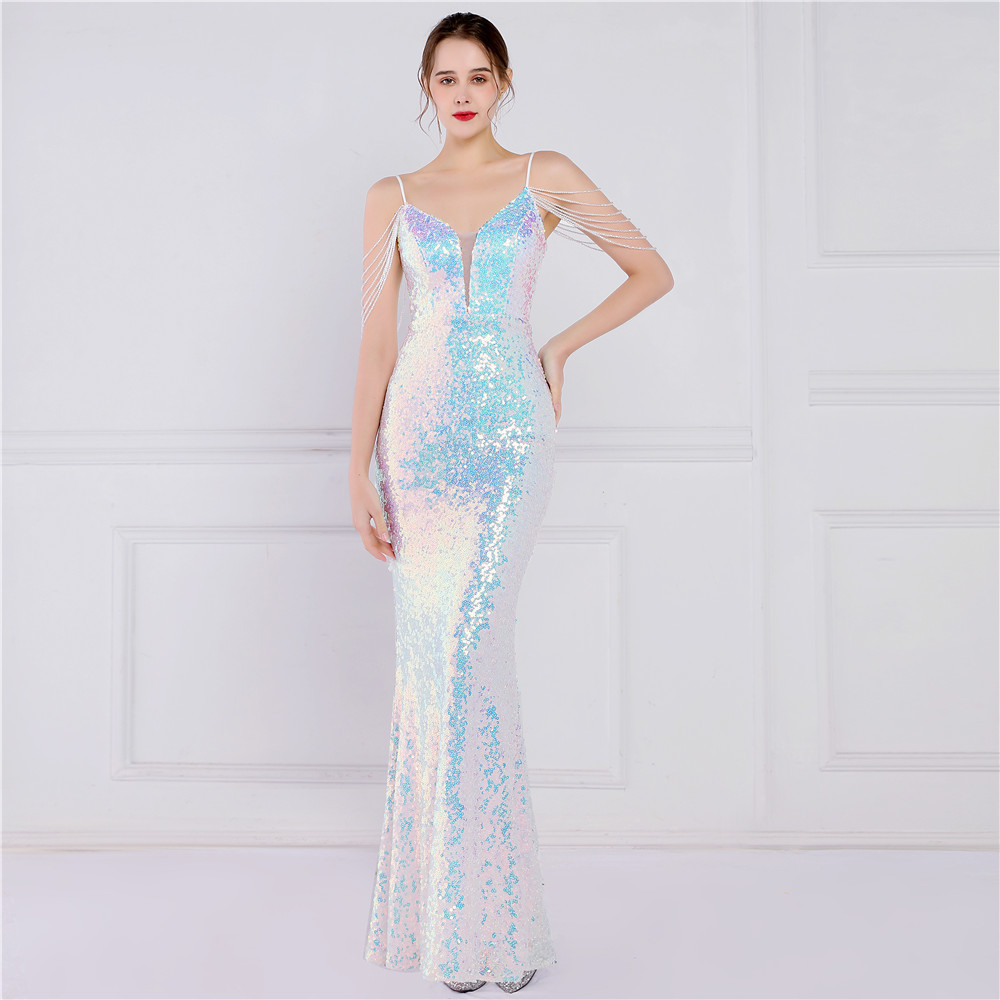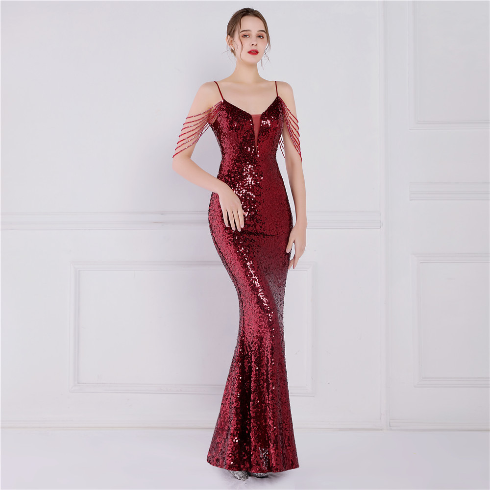 This Women Summer Vintage Strap Sleeveless Solid Sequined Mermaid Evening Dress Design Made Of Good Quality Polyester And Spandex Material, Which Is Stretchy, Durable And Comfortable. The Long Evening Dresses And Gowns Is Always The main Choice For All Kinds Of Parties, Cocktail, Prom, Events, And Dating Occasions. Evening Gowns At BamBam Comes With Huge Selections - Sequins, Beaded, Satin, Velvet, Lace.... When You Need retail Evening Dresses, BamBam retail Women Garment Online Shop Is Your One-Stop Online Shopping Choice.