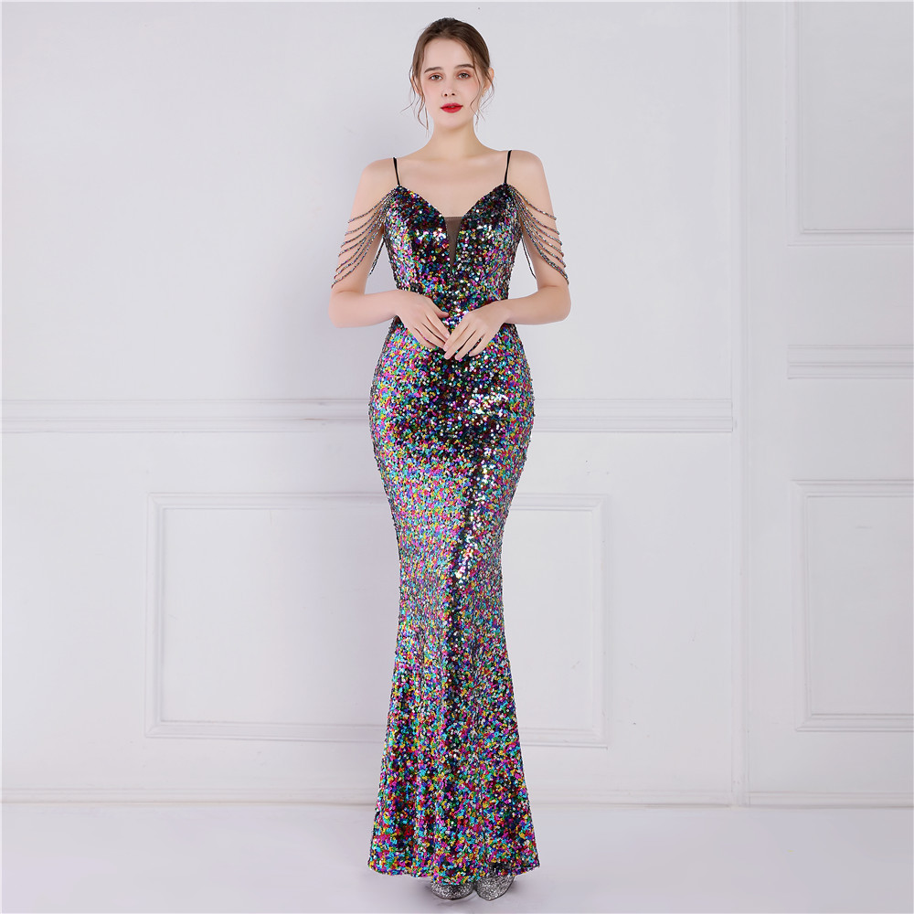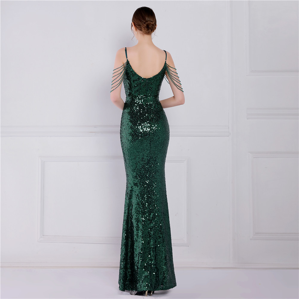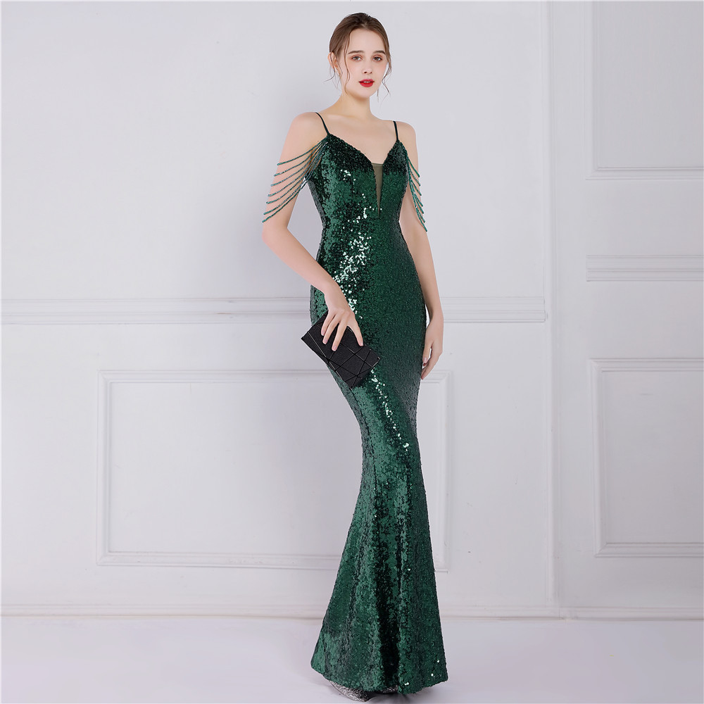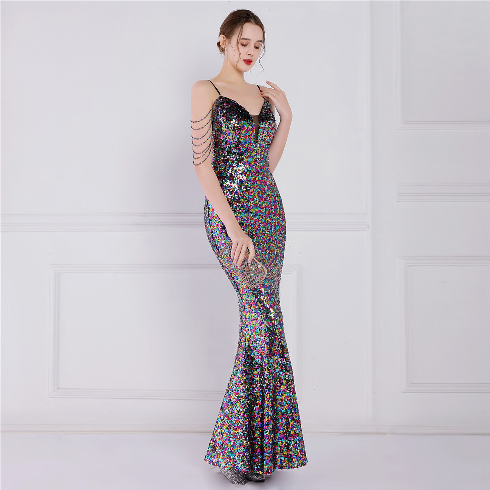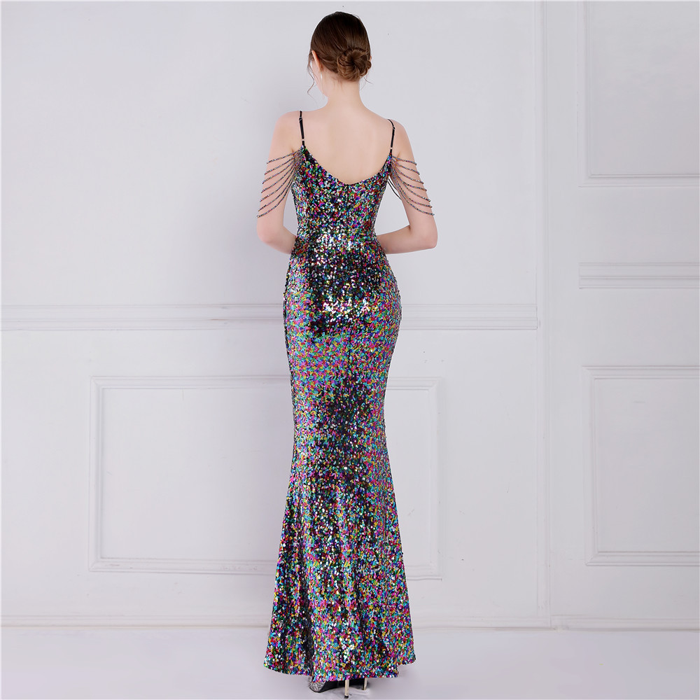 This Women Summer Vintage Strap Sleeveless Solid Sequined Mermaid Evening Dress Design Made Of Good Quality Polyester And Spandex Material, Which Is Stretchy, Durable And Comfortable. The Long Evening Dresses And Gowns Is Always The main Choice For All Kinds Of Parties, Cocktail, Prom, Events, And Dating Occasions. Evening Gowns At BamBam Comes With Huge Selections - Sequins, Beaded, Satin, Velvet, Lace.... When You Need retail Evening Dresses, BamBam retail Women Garment Online Shop Is Your One-Stop Online Shopping Choice.