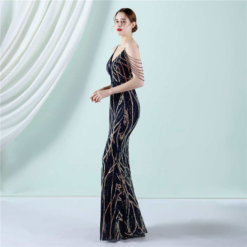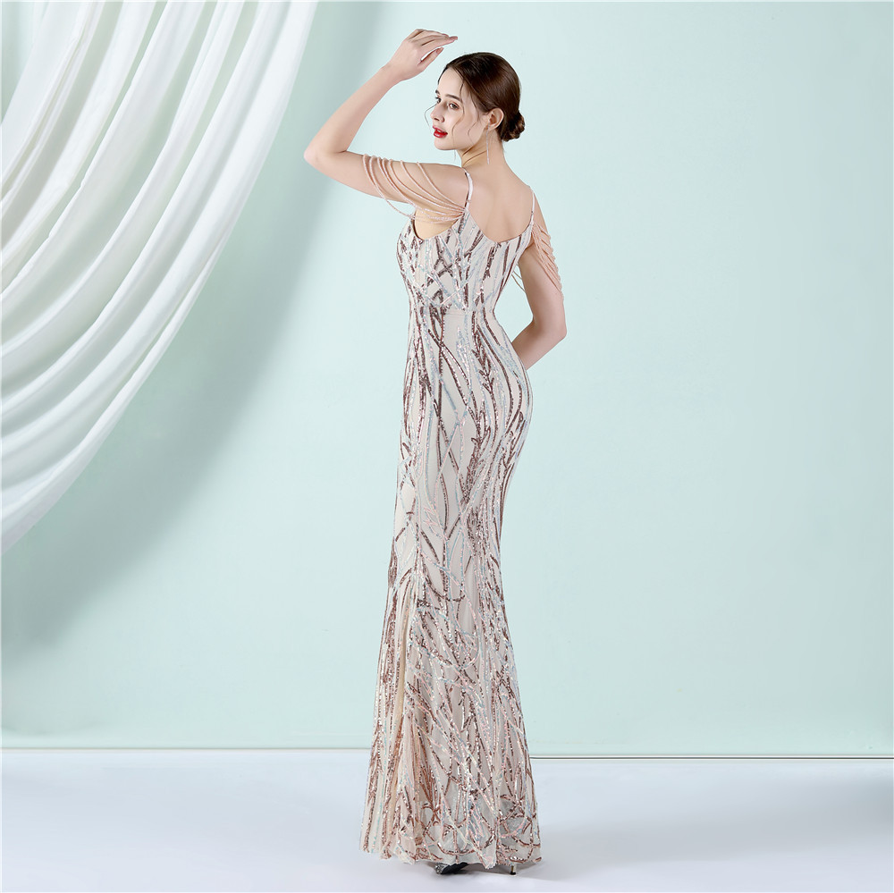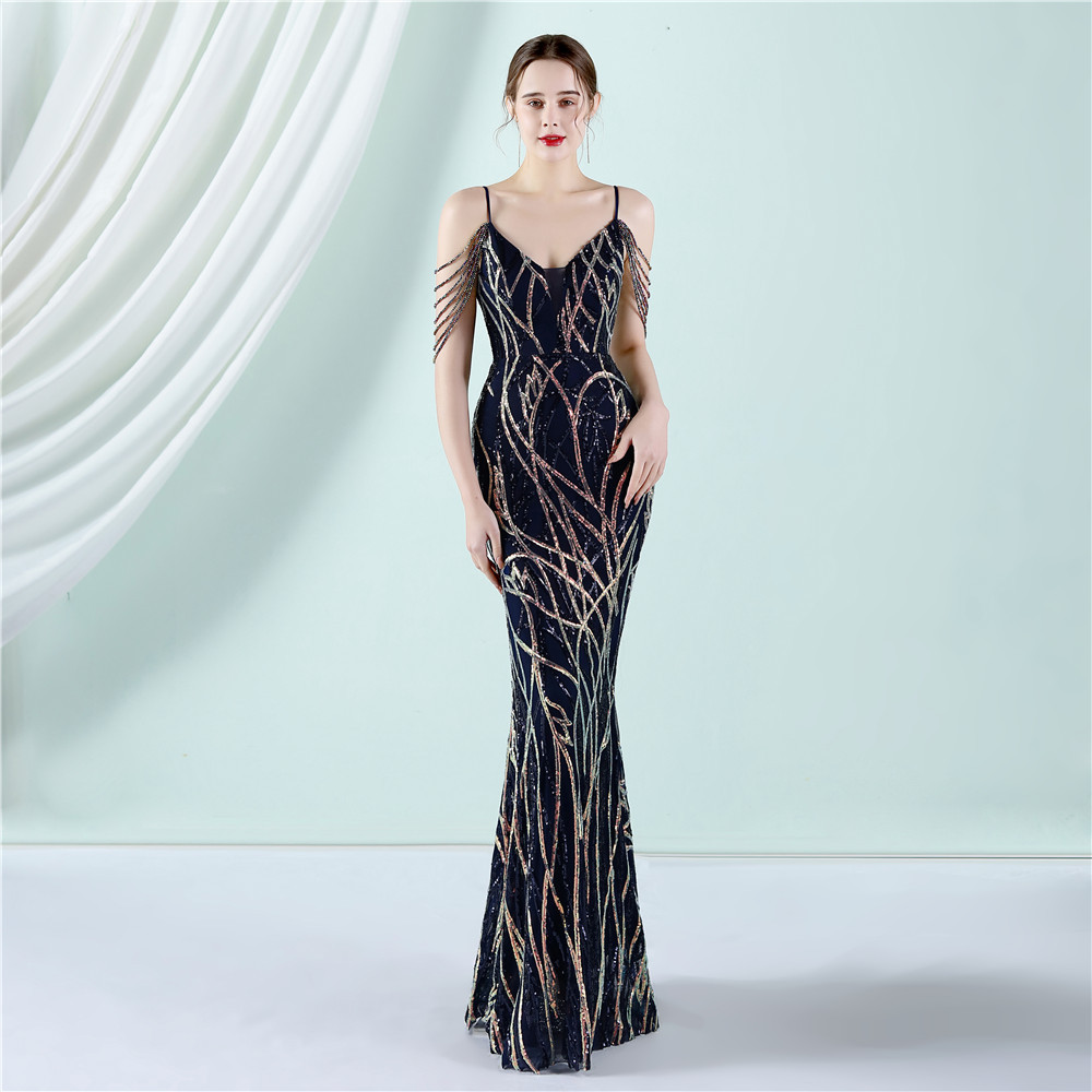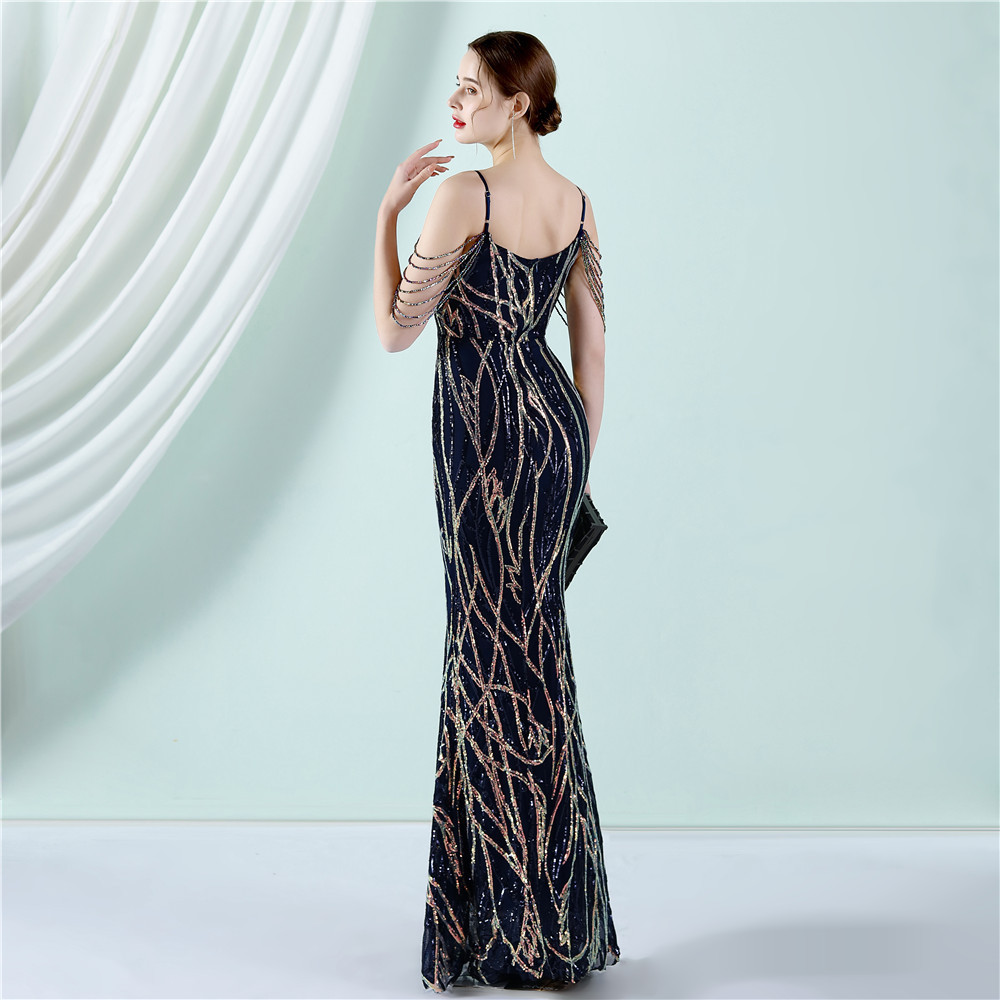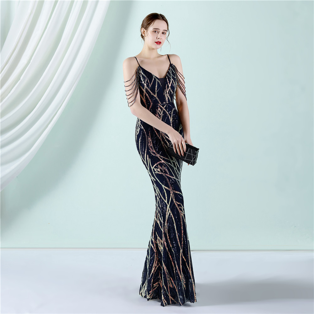 This Women Summer Vintage Strap Sleeveless Striped Print Metallic Sequined Mermaid Evening Dress Design Made Of Good Quality Polyester And Spandex Material, Which Is Stretchy, Durable And Comfortable. The Long Evening Dresses And Gowns Is Always The main Choice For All Kinds Of Parties, Cocktail, Prom, Events, And Dating Occasions. Evening Gowns At BamBam Comes With Huge Selections - Sequins, Beaded, Satin, Velvet, Lace.... When You Need retail Evening Dresses, BamBam retail Women Garment Online Shop Is Your One-Stop Online Shopping Choice.