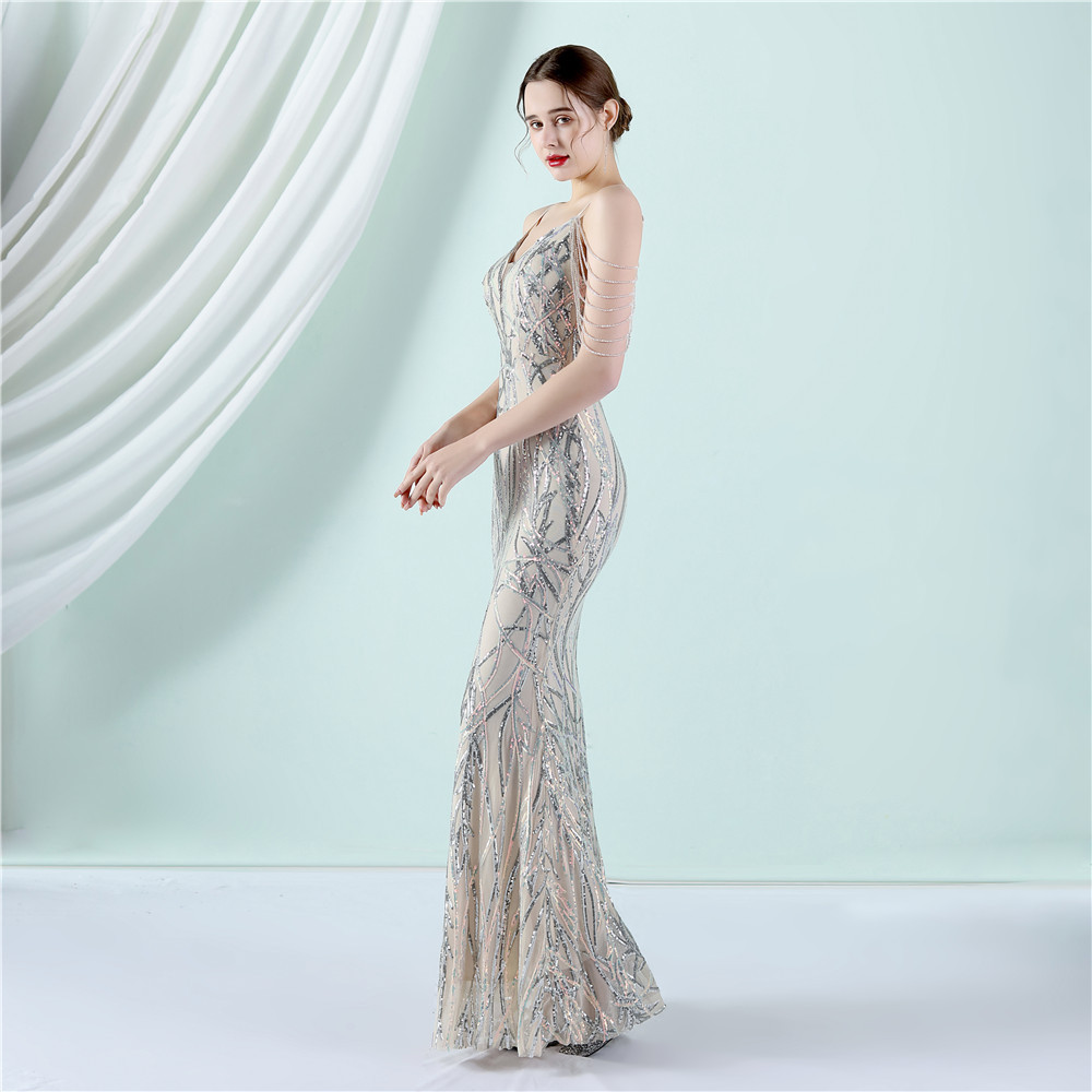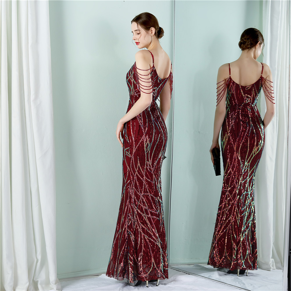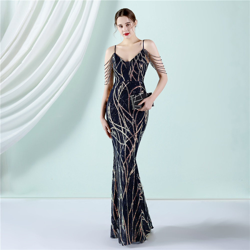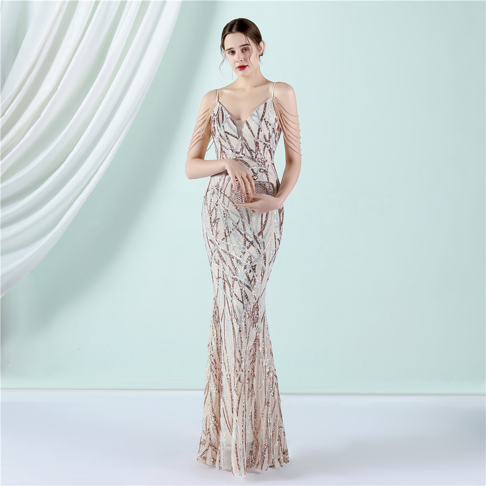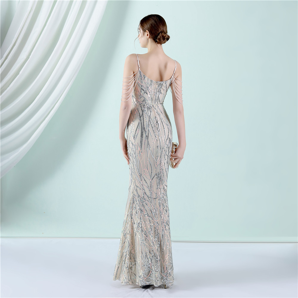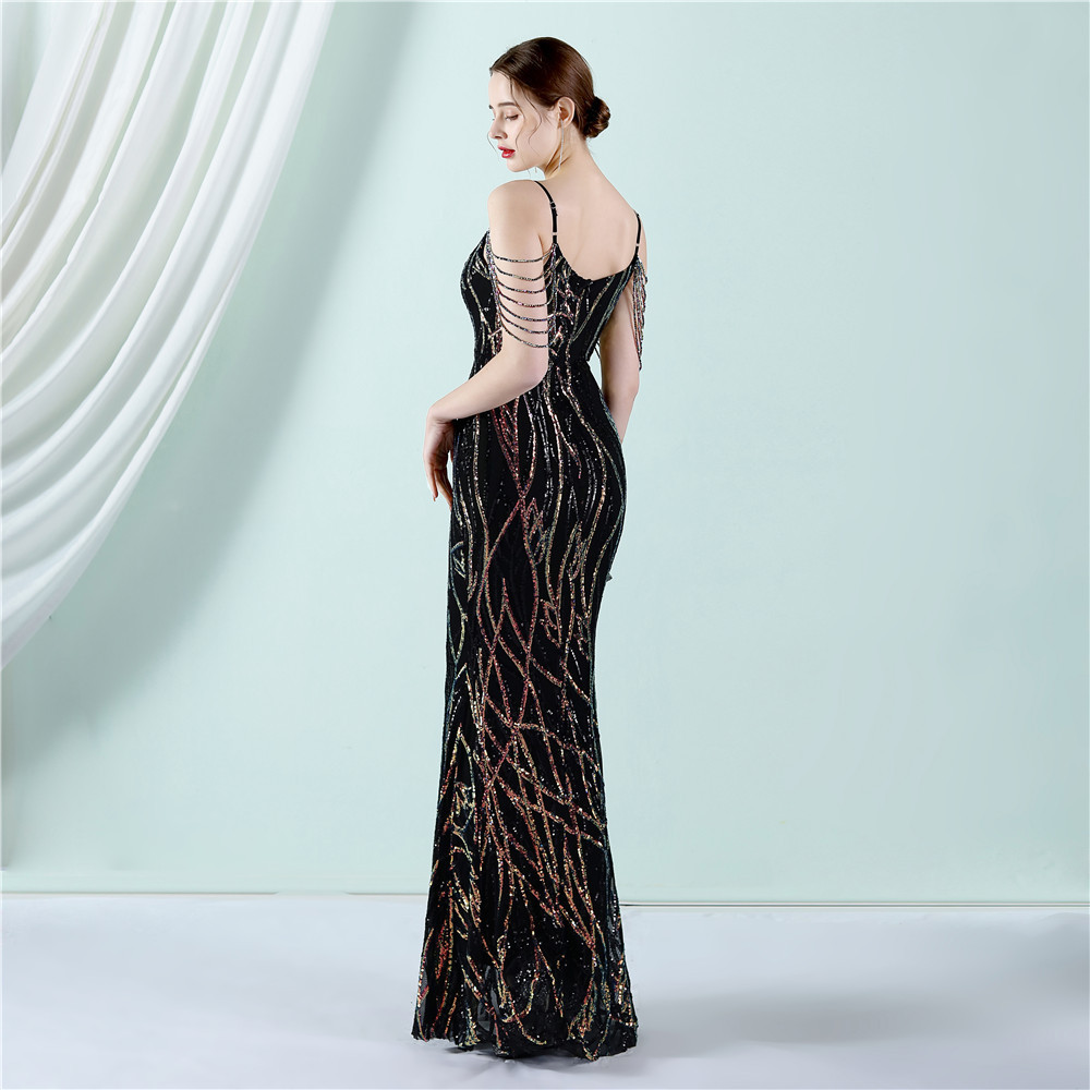 This Women Summer Vintage Strap Sleeveless Striped Print Metallic Sequined Mermaid Evening Dress Design Made Of Good Quality Polyester And Spandex Material, Which Is Stretchy, Durable And Comfortable. The Long Evening Dresses And Gowns Is Always The main Choice For All Kinds Of Parties, Cocktail, Prom, Events, And Dating Occasions. Evening Gowns At BamBam Comes With Huge Selections - Sequins, Beaded, Satin, Velvet, Lace.... When You Need retail Evening Dresses, BamBam retail Women Garment Online Shop Is Your One-Stop Online Shopping Choice.