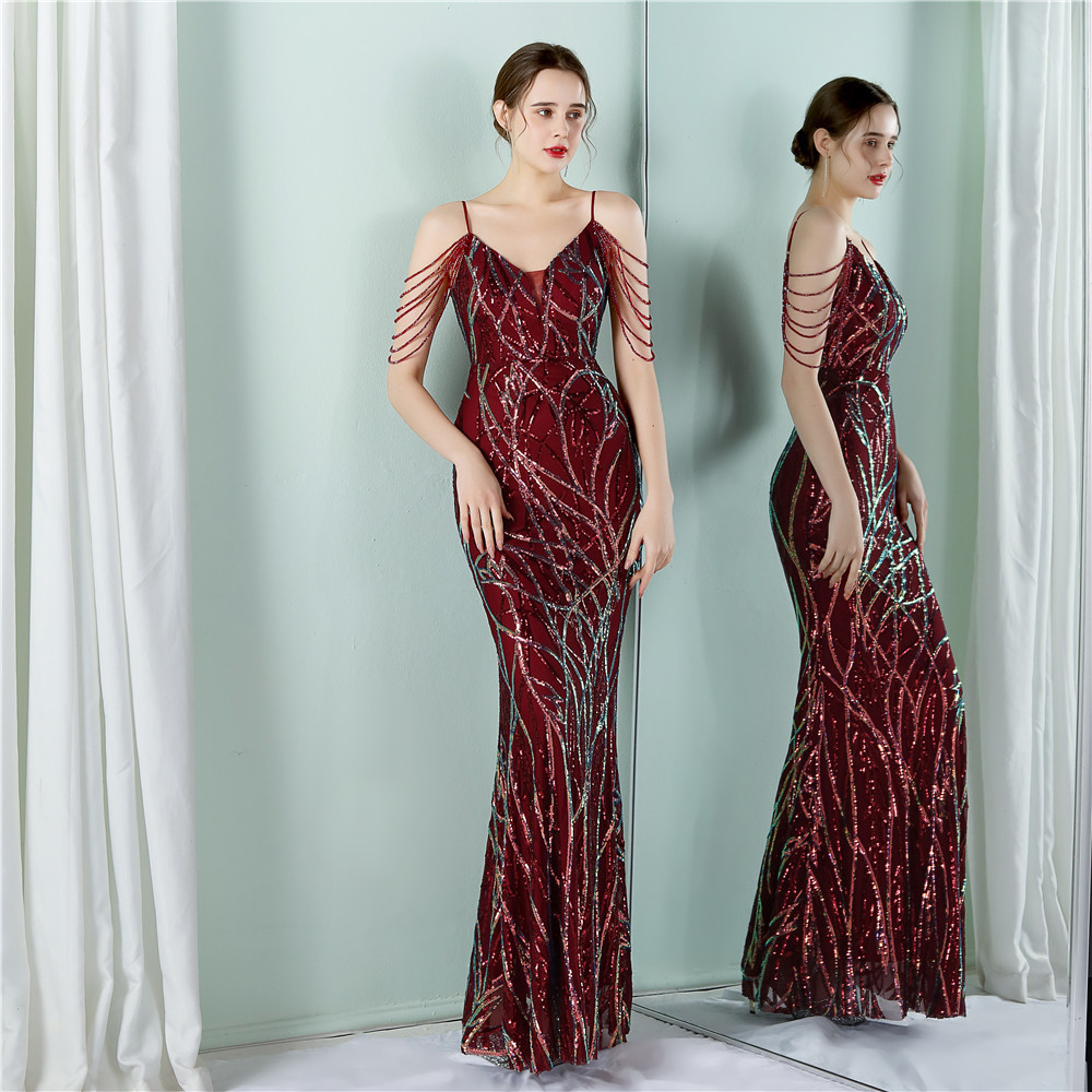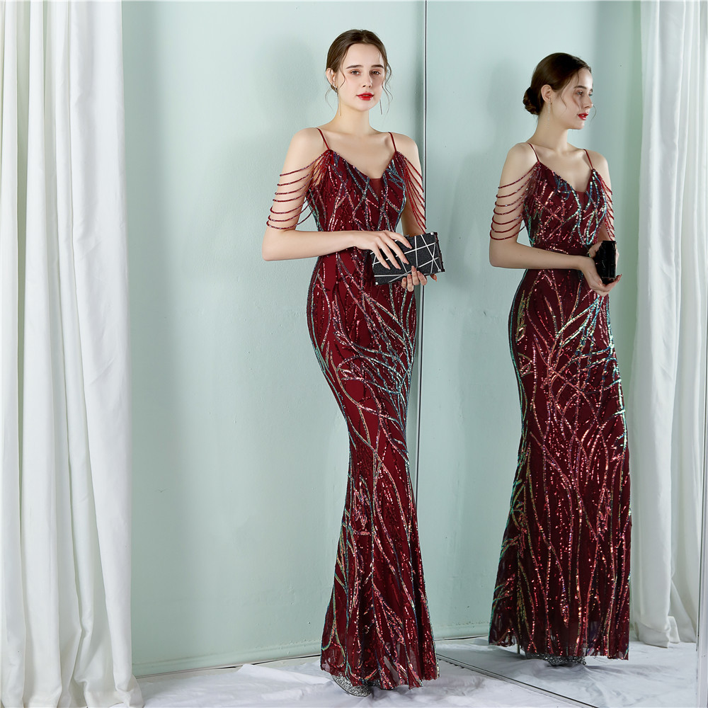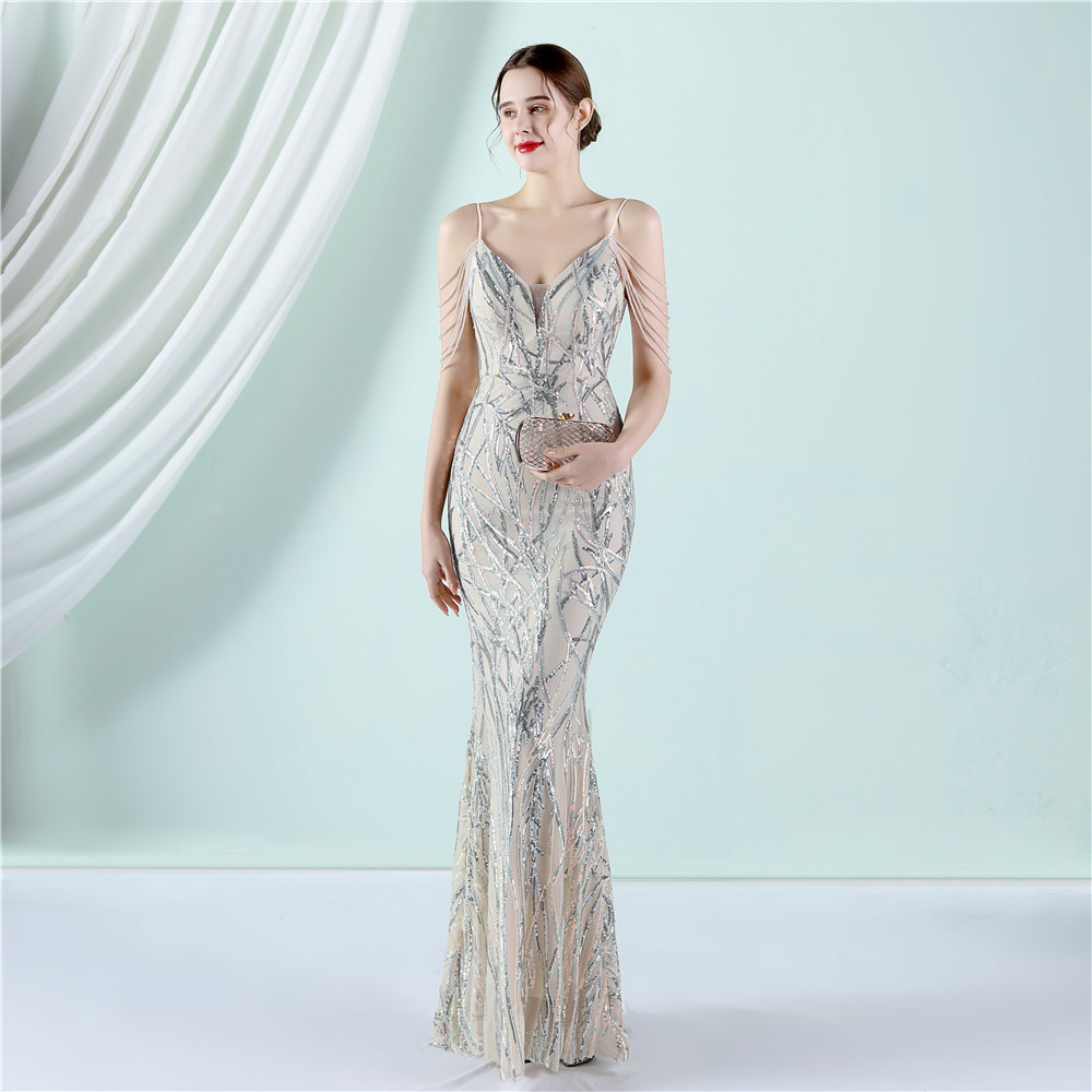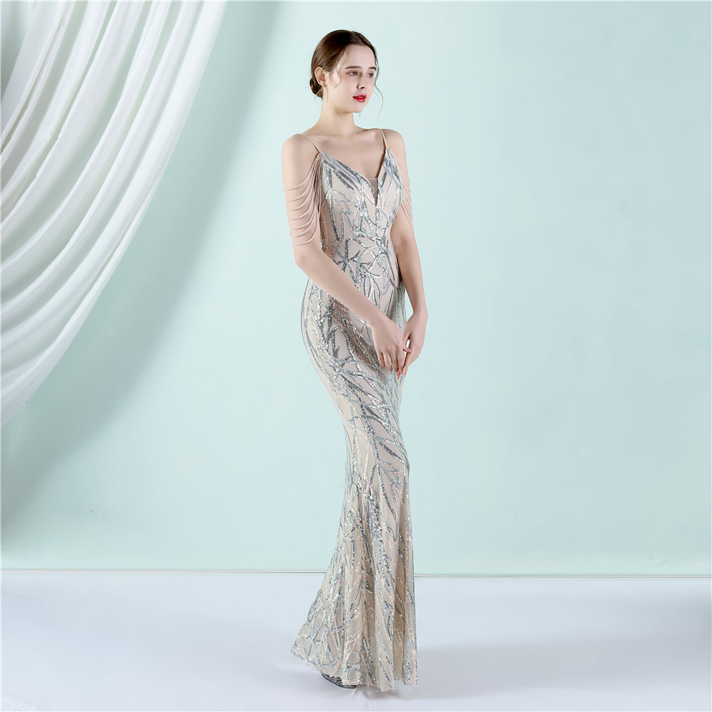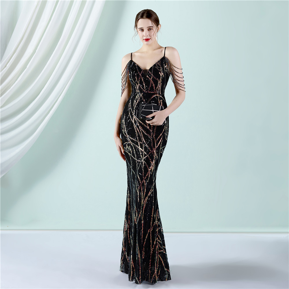 This Women Summer Vintage Strap Sleeveless Striped Print Metallic Sequined Mermaid Evening Dress Design Made Of Good Quality Polyester And Spandex Material, Which Is Stretchy, Durable And Comfortable. The Long Evening Dresses And Gowns Is Always The main Choice For All Kinds Of Parties, Cocktail, Prom, Events, And Dating Occasions. Evening Gowns At BamBam Comes With Huge Selections - Sequins, Beaded, Satin, Velvet, Lace.... When You Need retail Evening Dresses, BamBam retail Women Garment Online Shop Is Your One-Stop Online Shopping Choice.