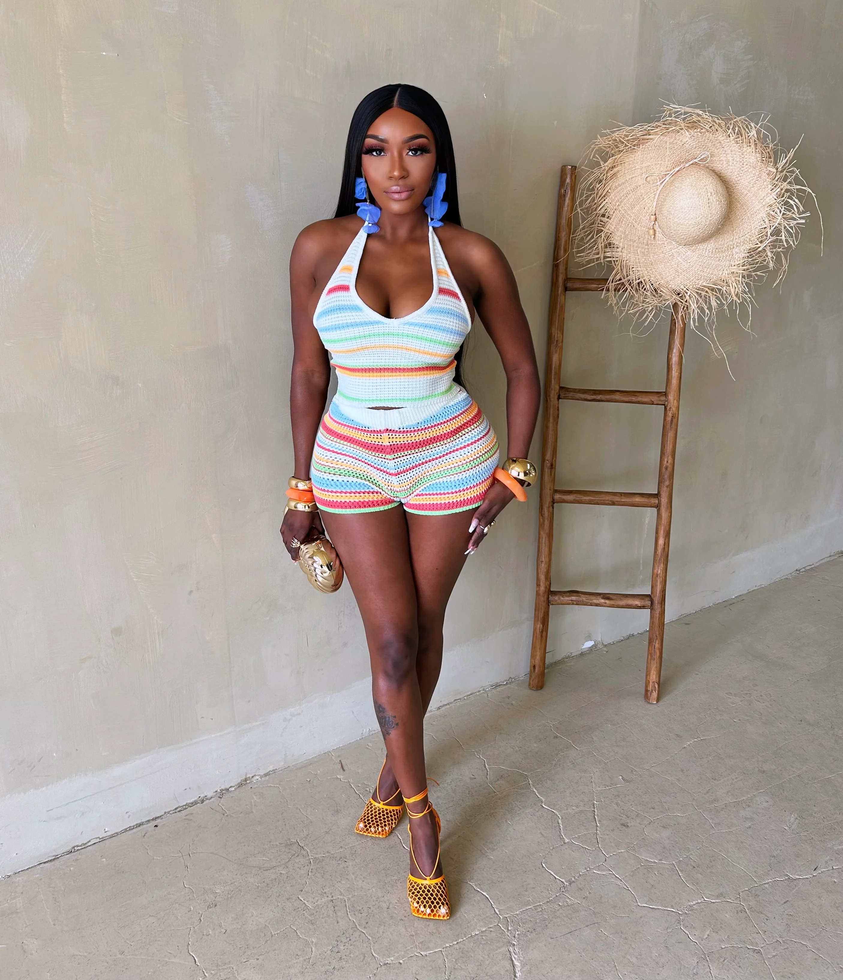 This Women Sweater Backless Halter Neck Top And Shorts Two-Piece Set Design Made Of High Quality polyester And Spandex Material. It Is Stretchy, Durable And Comfortable. It Come With The Top And Shorts. retail Short Sets Saves Some People From The Trouble Of Matching. And For Matchmakers It Is More Flexible Than One-Piece Outfit. Two Piece Short Set Can Be Worn Together Or Individually, Ladies Can Match Them According To Different Occasions. Grab Different Two Piece Short Sets For This Spring And Summer.