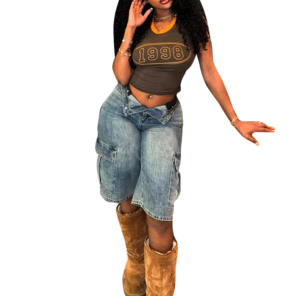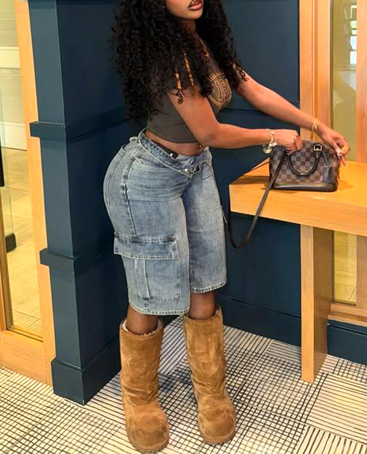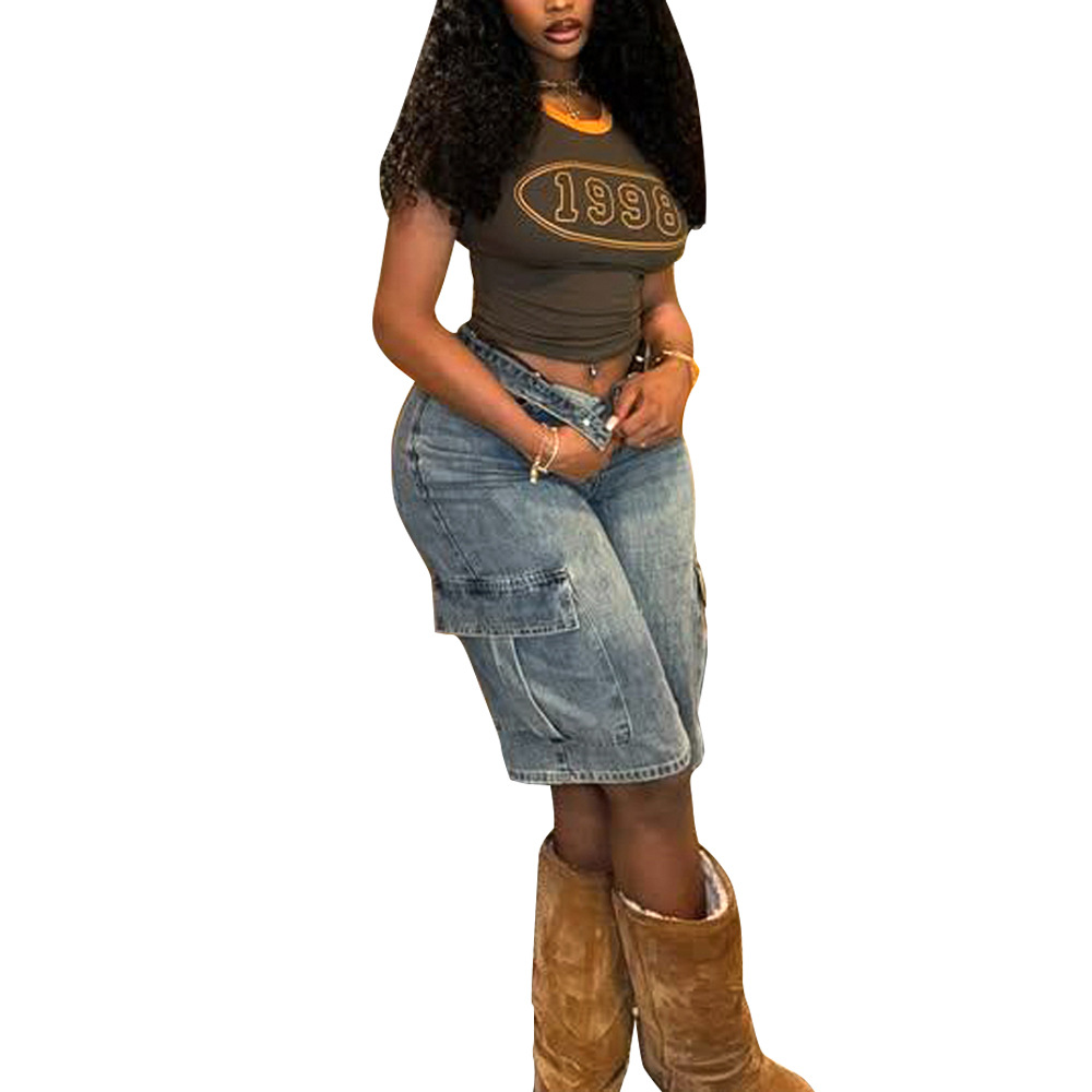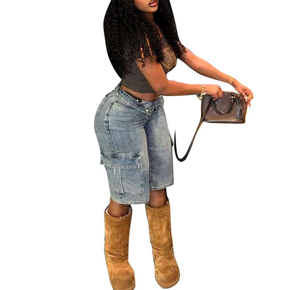This Women Trend Knee-Length Stretchy Denim Cargo Shorts Design Made Of Durable And Stretchy Jeans Fabric. It Is a Must-Have Item For everyday use. Trendy retail Jeans Is a Indispensable Item For Everyday Fashion. Women’s Jeans With High Waist Is a Must Have trouser/pant that helps bring the grace of shape of your legs out even more and fits perfectly snugging your thighs and body gracefully. Grab a Must Have High Waist Jeans retail For Your Closet, Just Choose Different Matching Tops To stay in control of Every Occasion Easily.