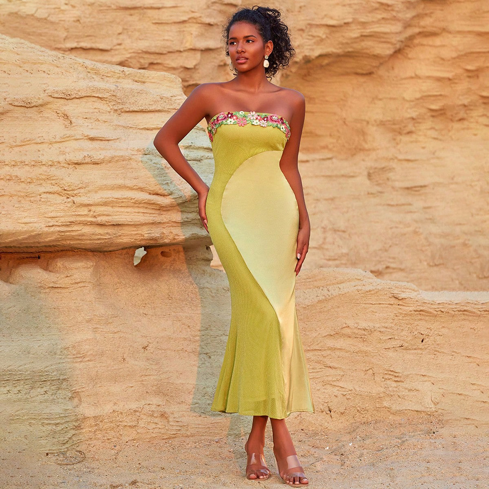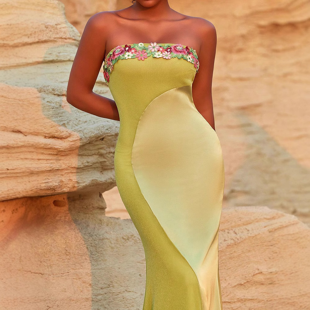 This Women Trendy Flower Patchwork French Holidays Strapless Dress Design Made Of Good Quality polyester And Spandex Material, Which Is Stretchy, Durable And Comfortable. The Long Evening Dresses And Gowns Is Always The main Choice For All Kinds Of Parties, Cocktail, Prom, Events, And Dating Occasions. Evening Gowns At BamBam Comes With Huge Selections - Sequins, Beaded, Satin, Velvet, Lace.... When You Need retail Evening Dresses, BamBam retail Women Garment Online Shop Is Your One-Stop Online Shopping Choice.