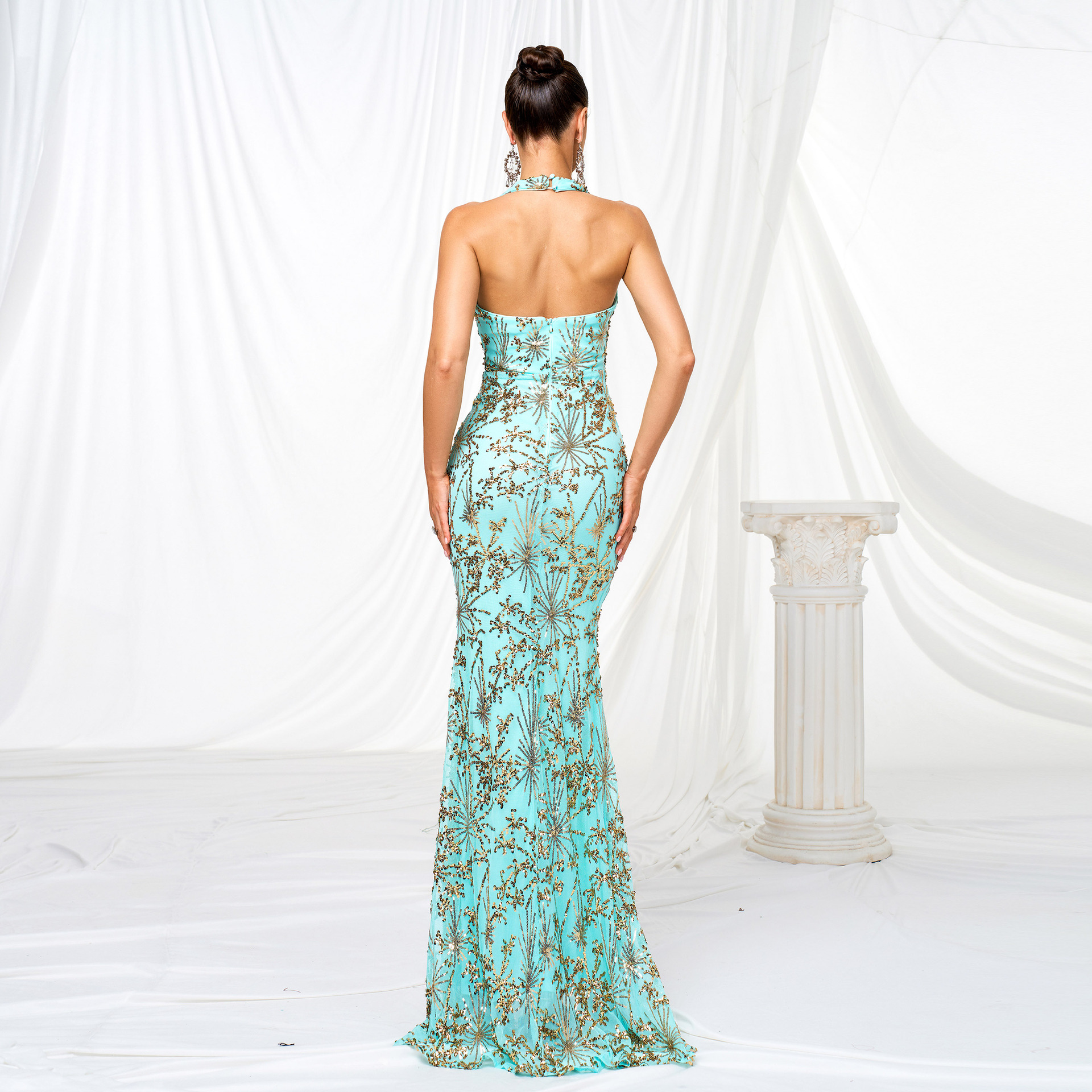 This Women v-Neck Halter Neck Bodycon Sequin Formal Party Slit Evening Dress Design Made Of Good Quality Polyester And Spandex Material, Which Is Stretchy, Durable And Comfortable. The Long Evening Dresses And Gowns Is Always The main Choice For All Kinds Of Parties, Cocktail, Prom, Events, And Dating Occasions. Evening Gowns At BamBam Comes With Huge Selections - Sequins, Beaded, Satin, Velvet, Lace.... When You Need retail Evening Dresses, BamBam retail Women Garment Online Shop Is Your One-Stop Online Shopping Choice.