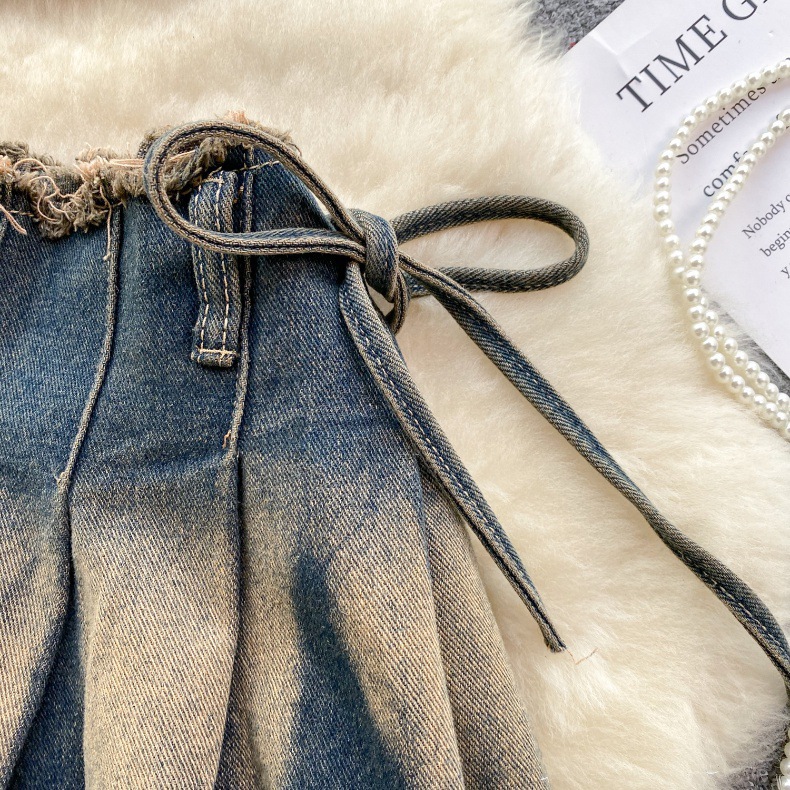 This Women Vintage Pleated Bow Denim Skirt And Made Of polyester And Spandex Material. It Is a Must-Have Item For Everyday use. Skirts Styles Range From Casual To Sporty, Sexy To Classic, No One Can Refuse The Temptation Of Skirts. Shop retail Skirts For Women At BamBam You Will Find wider Range Selections - Women’s Maxi And Denim Skirts, Mini And Leather Skirts, High Waist And Pencil Skirts, Midi And Pleated Skirts, Bohemian And Chiffon Skirts...When You Need More retail Women Skirts, You Can Always Find What You Need On Our retail Women Clothing Online Store.