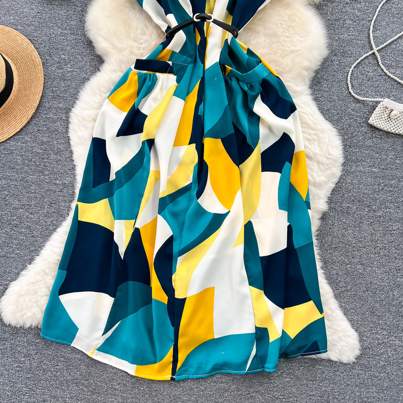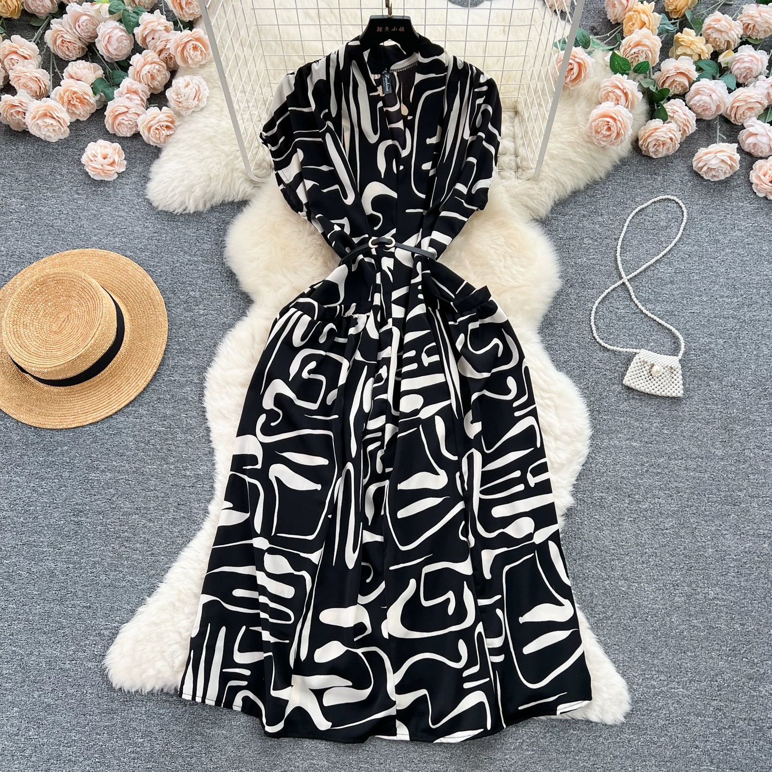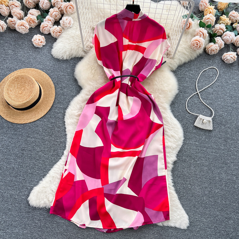 This Women Vintage v-Neck Print Summer French Lace-Up Maxi Shirt Dress Design Made Of High Quality polyester And Spandex Material. It's nice and stretchy, feels and wears comfortably on your body. Women’s Midi dresses suits all Kinds Of Occasions - Daily Wear, Go To The Church, Commuting And Events Occasion. Midi Dresses can't be Boring, Find Best Midi Dresses At BamBam With Trendy Styles.