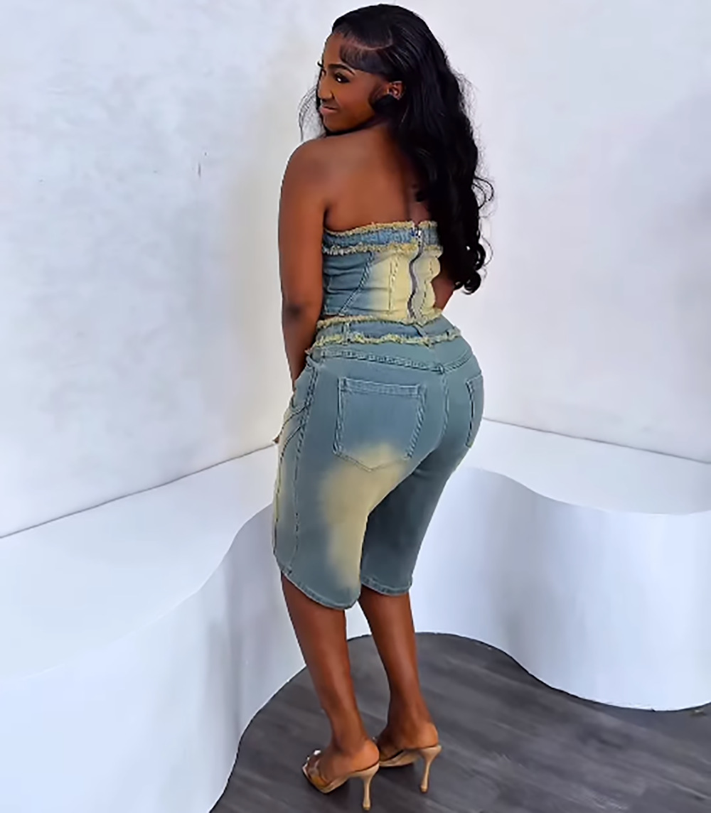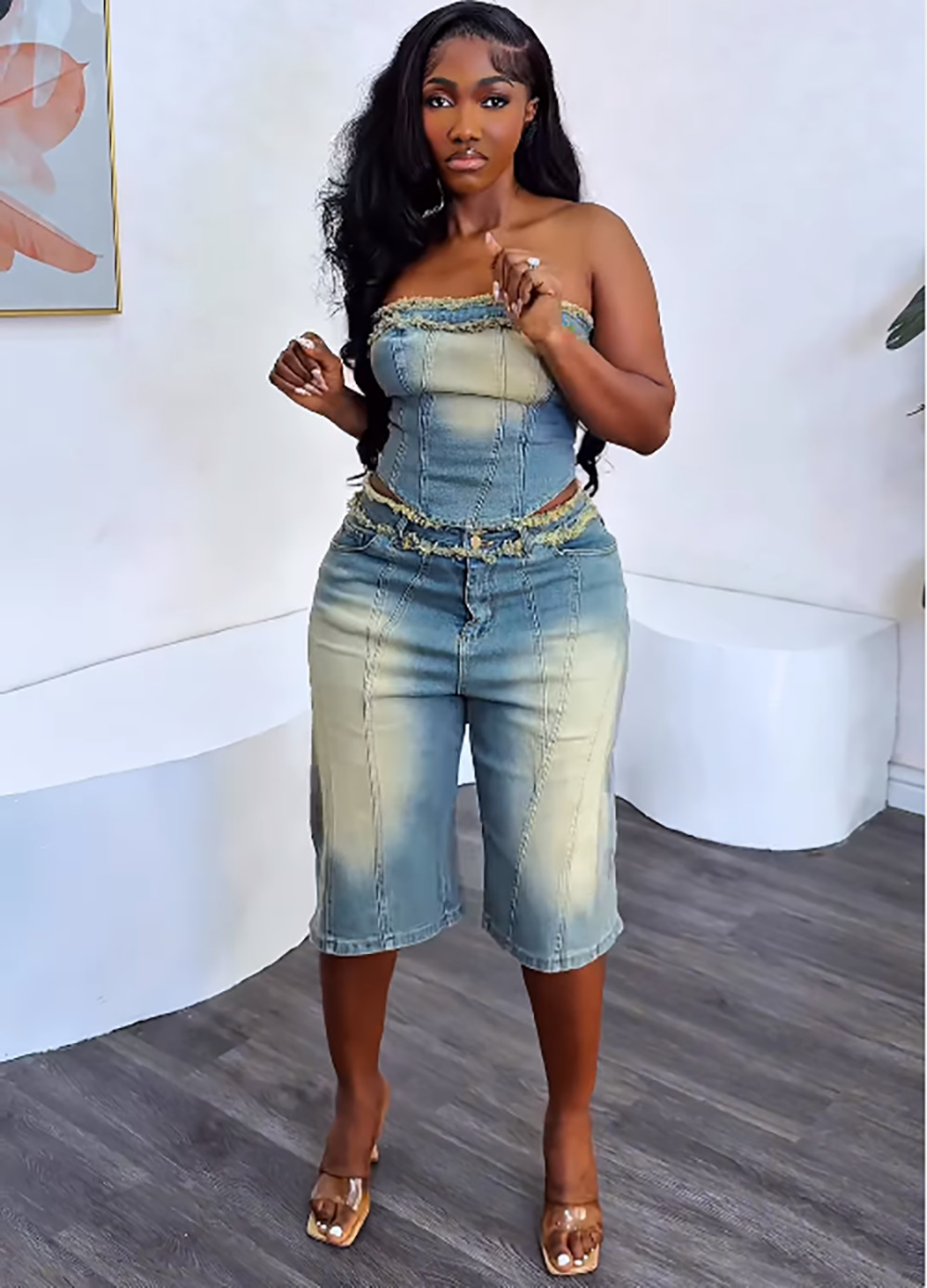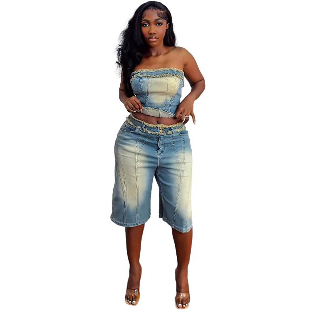 This Women Washed Chest-Wrapped Top Raw Edge Sretchy Pants Two Piece Set Design Made Of High Quality polyester And Spandex Material. It Is Stretchy, Durable And Comfortable. It Come With The Top And Shorts. retail Short Sets Saves Some People From The Trouble Of Matching. And For Matchmakers It Is More Flexible Than One-Piece Outfit. Two Piece Short Set Can Be Worn Together Or Individually, Ladies Can Match Them According To Different Occasions. Grab Different Two Piece Short Sets For This Spring And Summer.