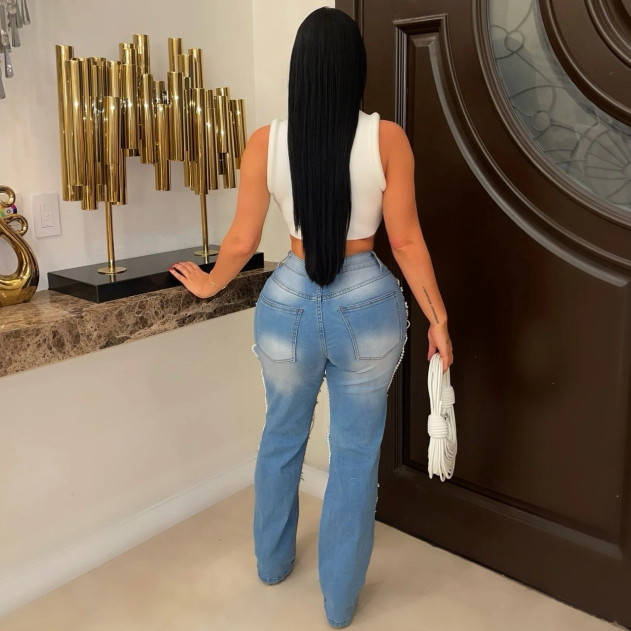 This Women Washed Ripped Knitting Denim Pants Design Made Of Durable And Stretchy Jeans Fabric. It Is a Must-Have Item For everyday use. Trendy retail Jeans Is a Indispensable Item For Everyday Fashion. Women’s Jeans With High Waist Is a Must Have trouser/pant that helps bring the grace of shape of your legs out even more and fits perfectly snugging your thighs and body gracefully. Grab a Must Have High Waist Jeans retail For Your Closet, Just Choose Different Matching Tops To stay in control of Every Occasion Easily.