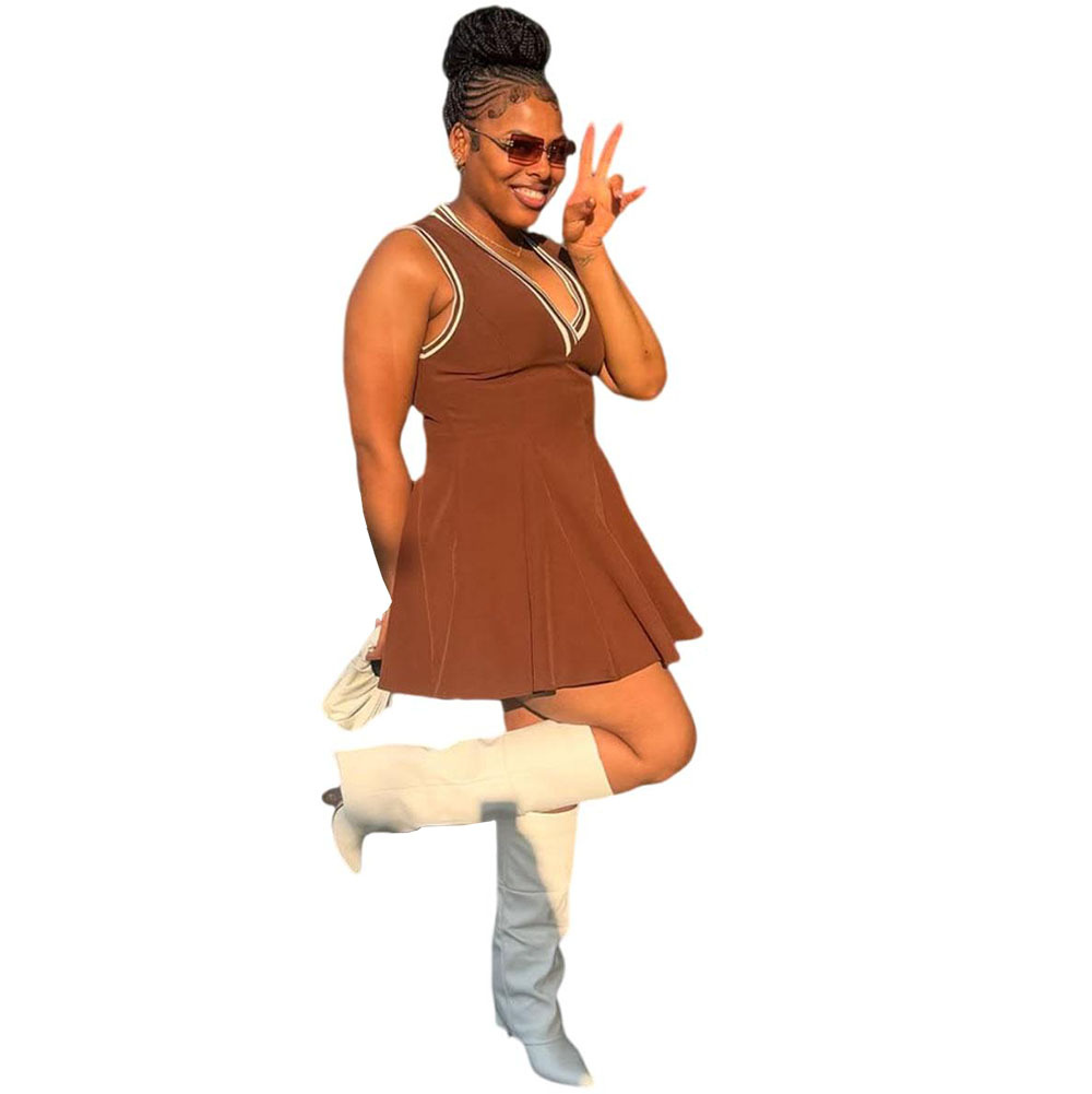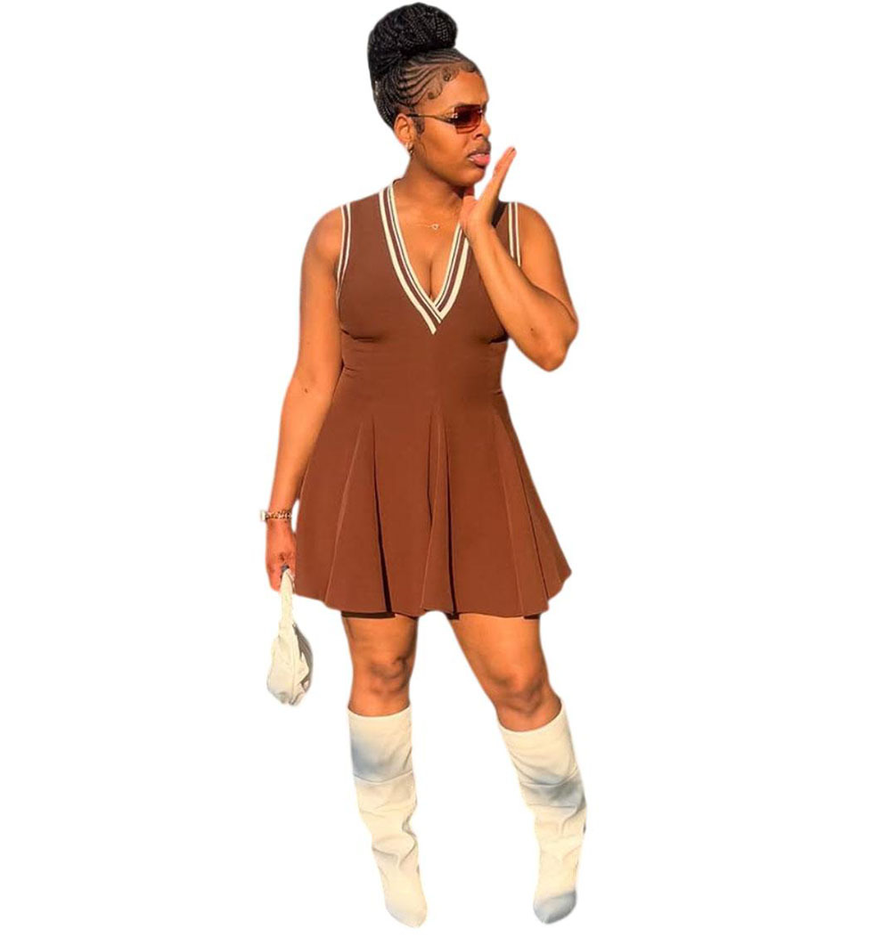This Women Women Sexy Pleated Lotus Leaf Sleeveless Sundress Design Made Of High Quality polyester And Spandex Material. It Is Stretchy, Durable And Comfortable. Casual Dresses With Long Sleeves Can Not Only Be Worn As Outerwear In Spring And Autumn, But Also Matching a Jacket In Winter, It Is a Must Have Item For Every Season. Grab Really Great Buy Casual Dresses For Women And Grow Your Business. No Moq In BamBam.