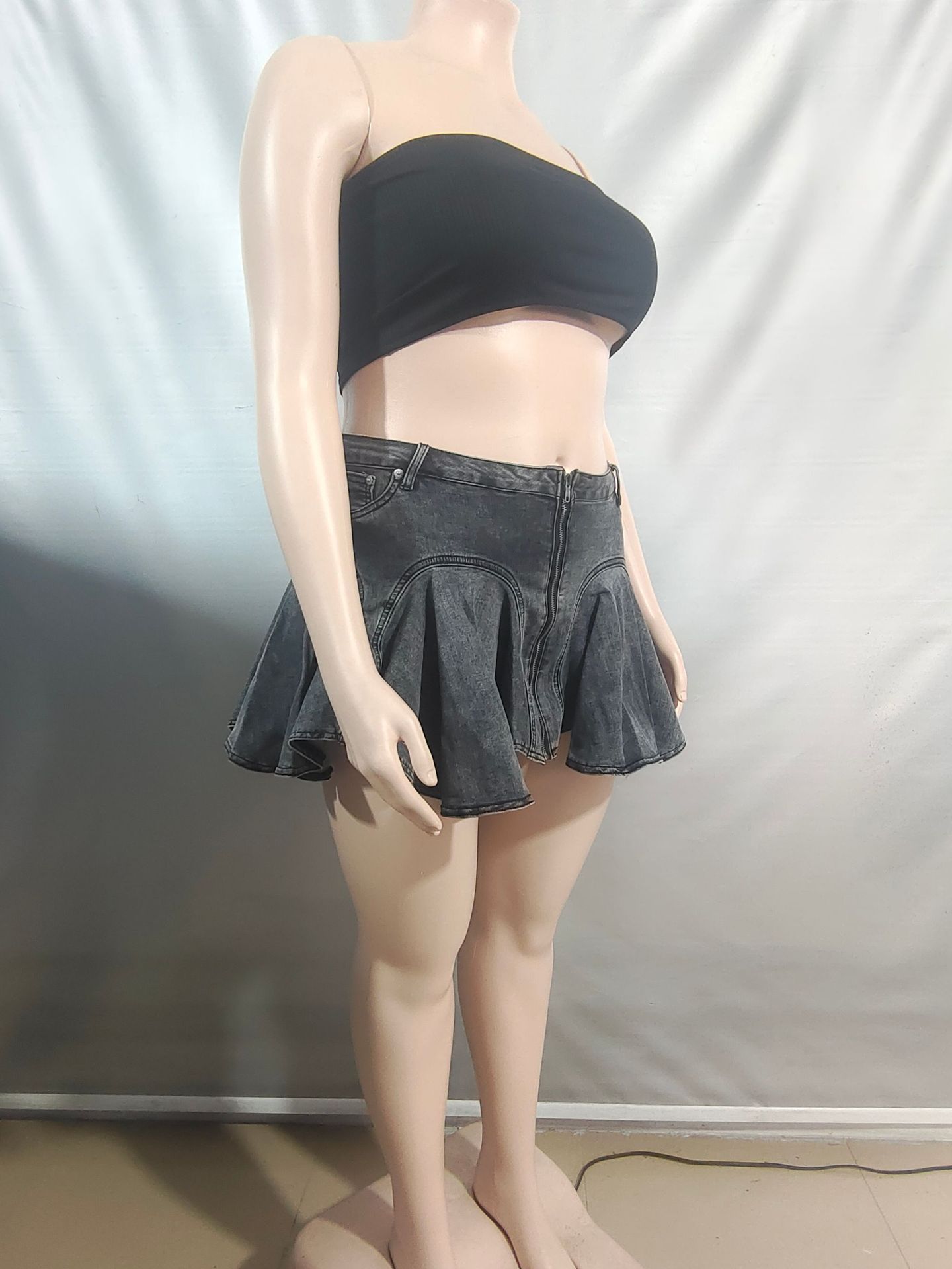 This Women Zipper Lotus Leaf Pleated Denim Skirt And Made Of polyester And Spandex Material. It Is a Must-Have Item For Everyday use. Skirts Styles Range From Casual To Sporty, Sexy To Classic, No One Can Refuse The Temptation Of Skirts. Shop retail Skirts For Women At BamBam You Will Find wider Range Selections - Women’s Maxi And Denim Skirts, Mini And Leather Skirts, High Waist And Pencil Skirts, Midi And Pleated Skirts, Bohemian And Chiffon Skirts...When You Need More retail Women Skirts, You Can Always Find What You Need On Our retail Women Clothing Online Store.